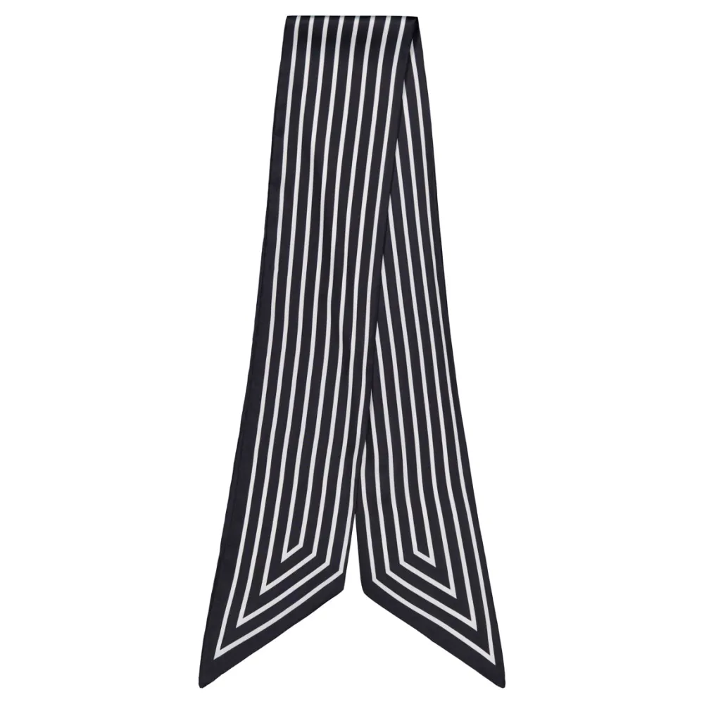 Klementin raidallinen huivi on täydellinen lisä asuihin – solmi kaulaan, hiuksiin, laukun hihnaan tai vyöksi. Huivissa on monikäyttöinen kapea malli ja kauniisti laskeutua sileä materiaali.