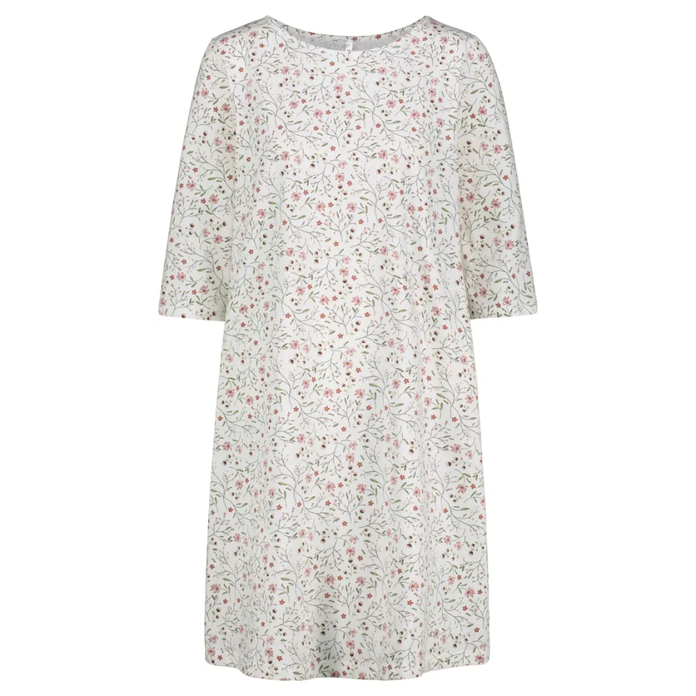 Klementin ihanan pehmeässä yöpaidassa on rennon väljä istuvuus, reilu pyöreä pääntie ja 3/4 -pituiset hihat. Mukavan väljä malli ja pehmeä materiaali saavat yöpaidan laskeutumaan miellyttävästi ja tuntumaan mukavalta päällä. Kankaassa on suloinen kukkakuosi.