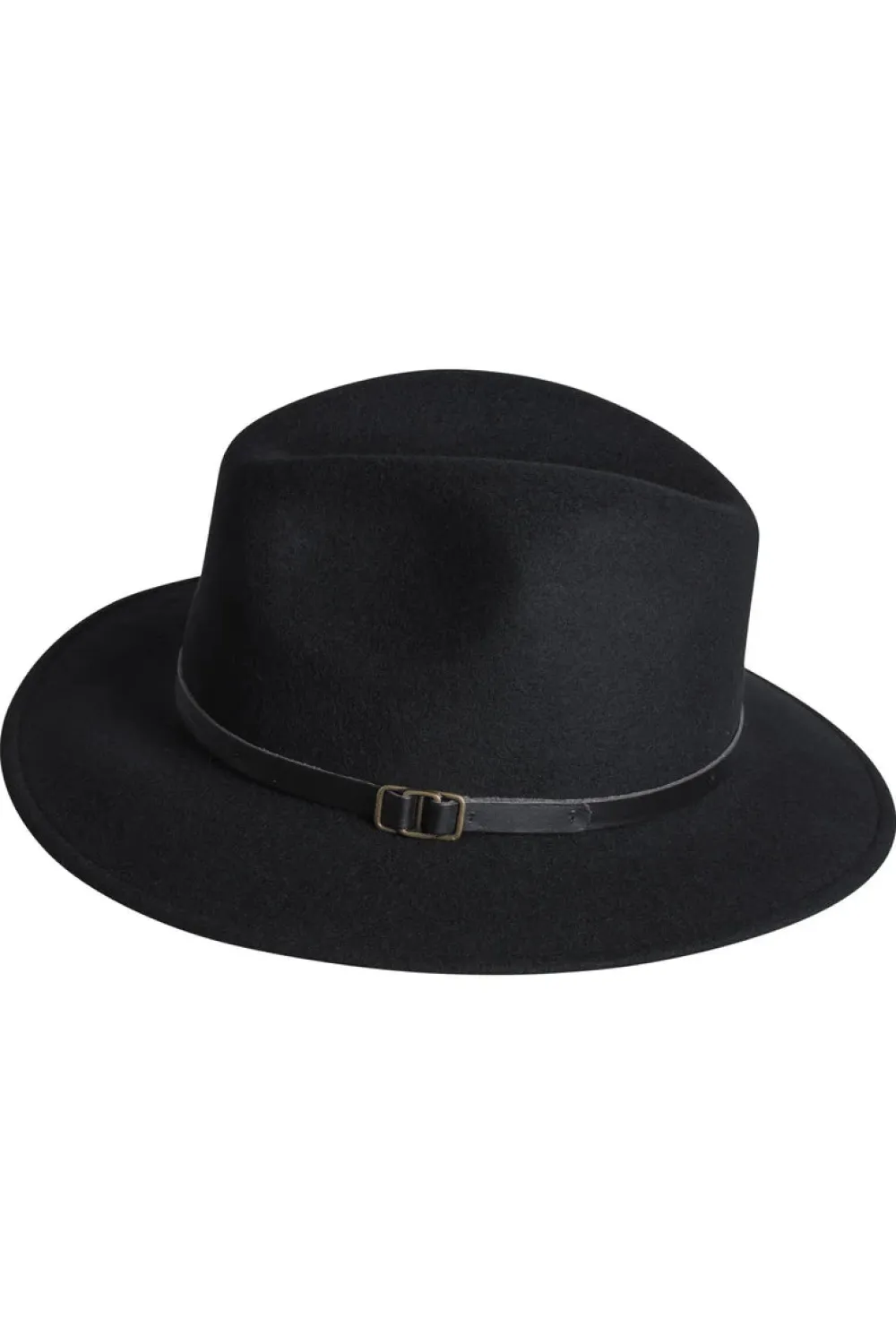 KN Kati Niemi Aleksi S on leveälierinen huopahattu miehille ja naisille. Tässä hatussa on klassiset lommot lakimuksen päällä ja sivuilla. Suora lieri. Somisteena ohut nahkanauha sekä metallinen solki.