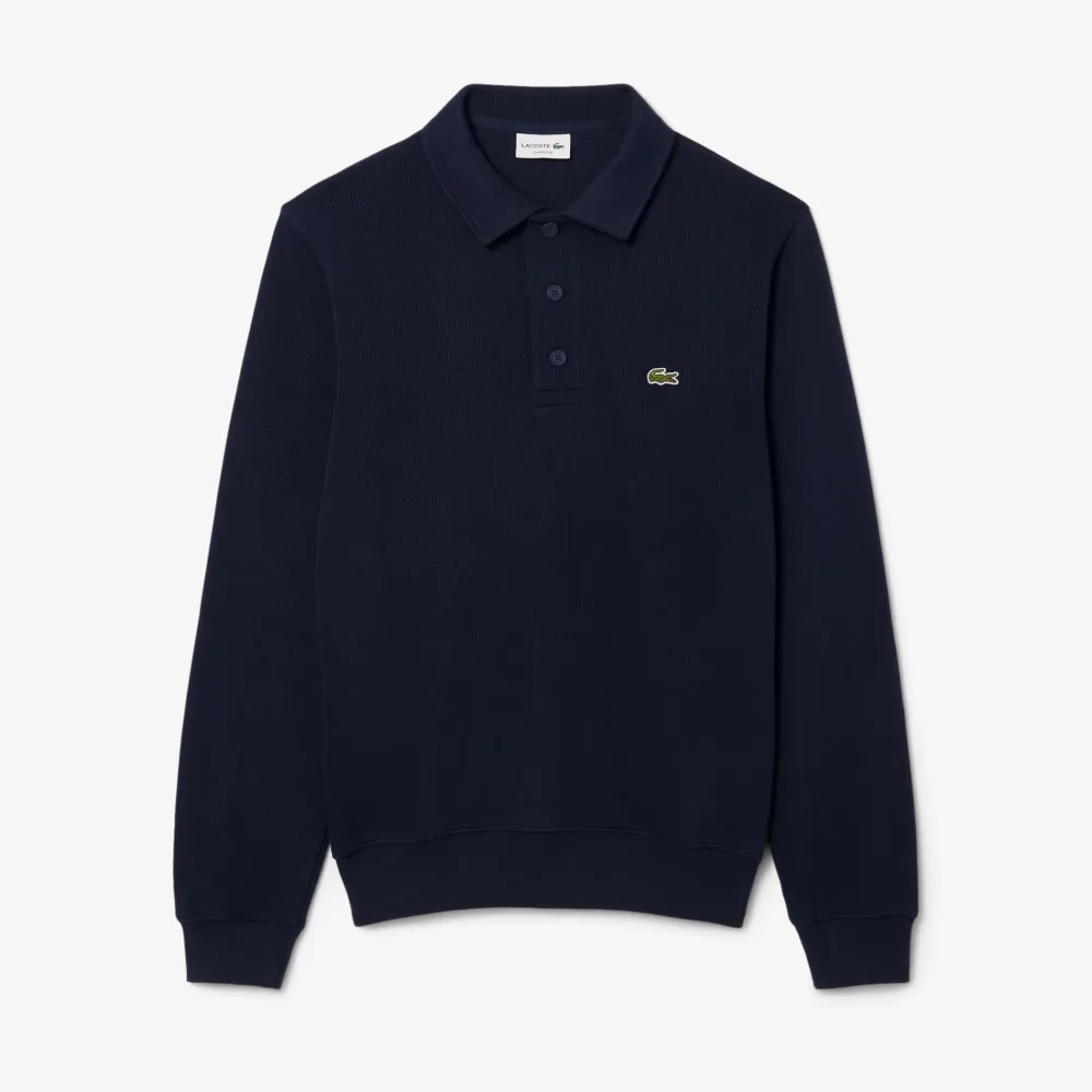 Tämä Lacosten collegepaita on täynnä brändille tunnusomaisia yksityiskohtia ja huokuu ranskalaista eleganssia, jota Lacoste on edustanut vuodesta 1933 lähtien. Paita on valmistettu pehmeästä ja miellyttävästä ribatusta interlock-puuvillaneuloksesta, ja sen viimeistellyt yksityiskohdat ammentavat inspiraationsa ikonisesta poolopaidasta. Rennon tyylikäs kokonaisuus kruunataan brodeeratulla Lacoste-krokotiililla rinnassa.