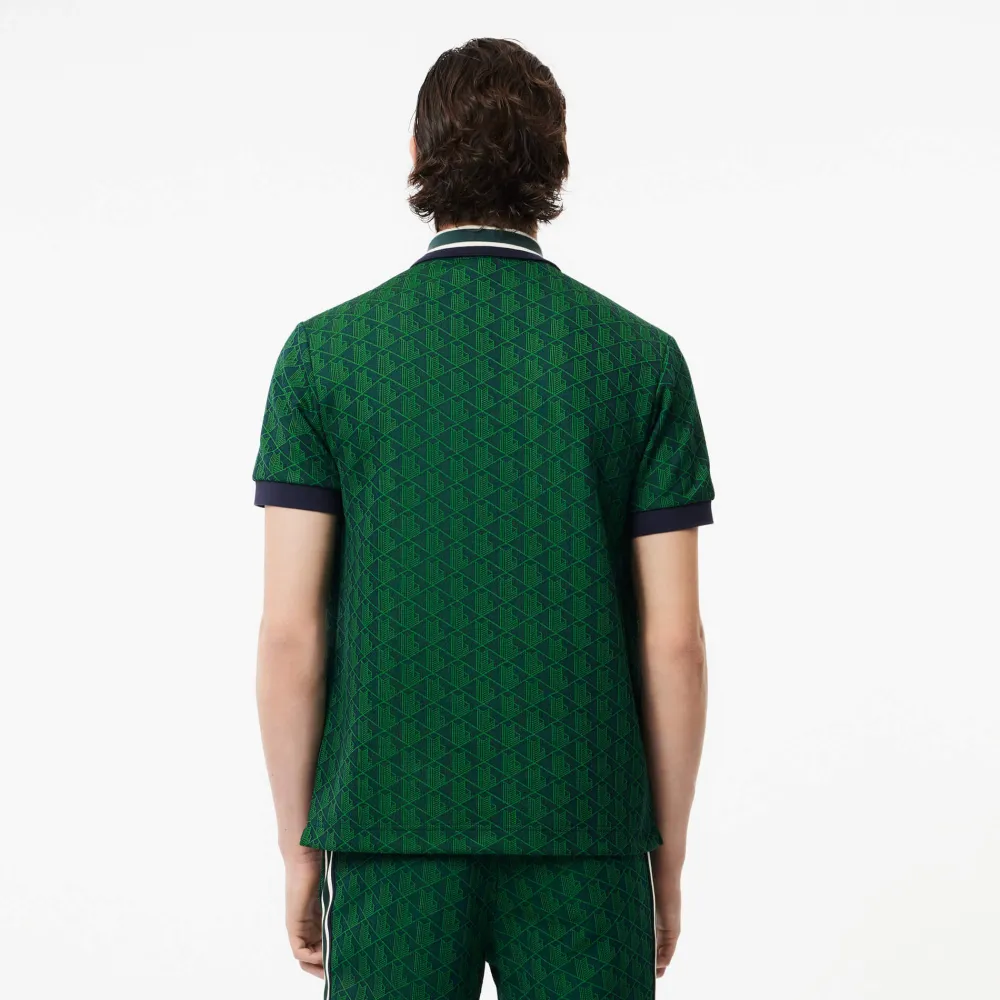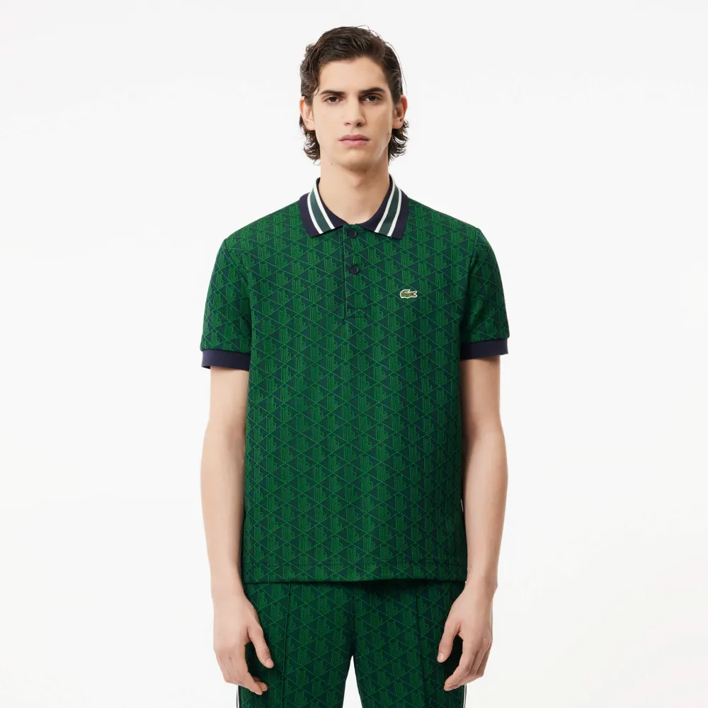 Lacoste Pikeepaidat|Kaikki Paidat>Miesten Poolopaita, CLASSIC FIT CONTRAST COLLAR MONOGRAM Vihreä Kuosi