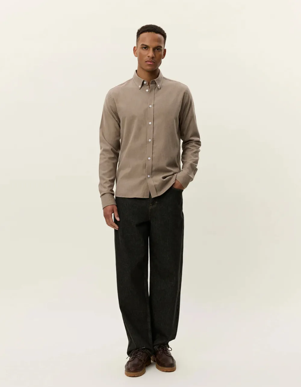 – Vartalonmyötäinen istuvuus”>Desert-paita on valmistettu 100 % puuvillasta, joka on harjattu pehmeyden ja lämmön takaamiseksi. Siinä on tyylikäs, vartalonmyötäinen istuvuus. Paidassa on nappikaulus, kontrastiväriset napit, etuhalkio ja klassinen kaarroke, jossa keskellä laskos.