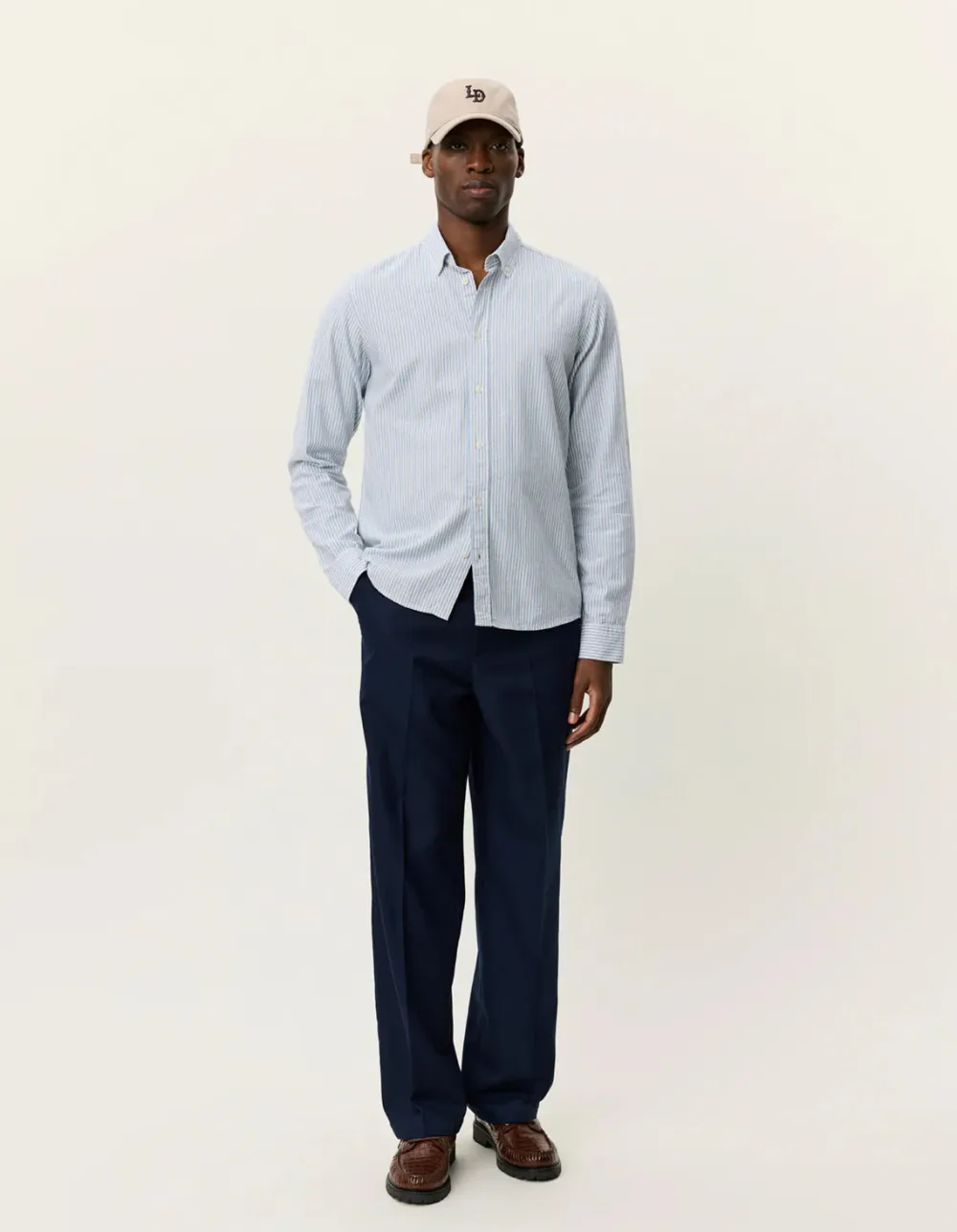 Kesäisempi versio suositusta Konrad-mallistamme. Paita on valmistettu raikkaasta puuvilla-pellavasekoitteesta, jossa klassinen raidallinen kuvio ja hillitty, sävy sävyyn brodeerattu logo rinnassa.