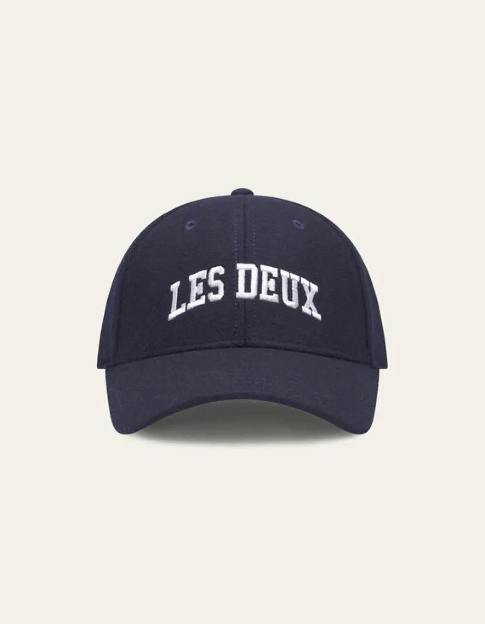 – Klassinen lippalakkisiluetti”>Les Deux Wool -lippis yhdistää klassisen katutyylin talviseen lämpöön. Villasekoitteesta valmistetussa lippiksessä on kirjailtu yliopistotyylinen teksti edessä ja takana sekä snapback-kiinnitys.