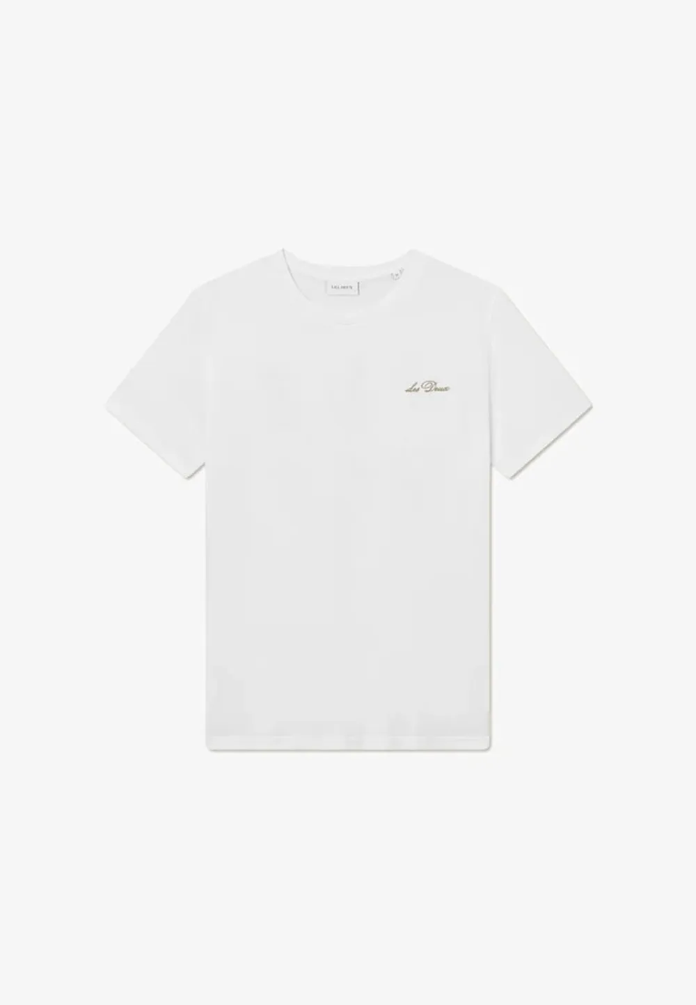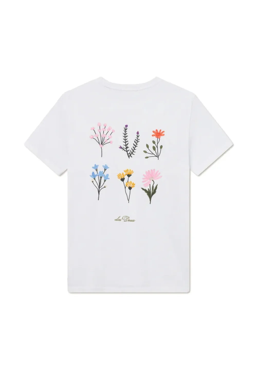 Les Deux miesten t-paita on valmistettu laadukkaasta puuvillasta. T-paidassa on klassinen suora regular fit –malli, pyöreä pääntie ja lyhyet hihat sekä näyttävä villikukkaprintti selässä. Rinnassa on hillitty Les Deux -tekstilogo.