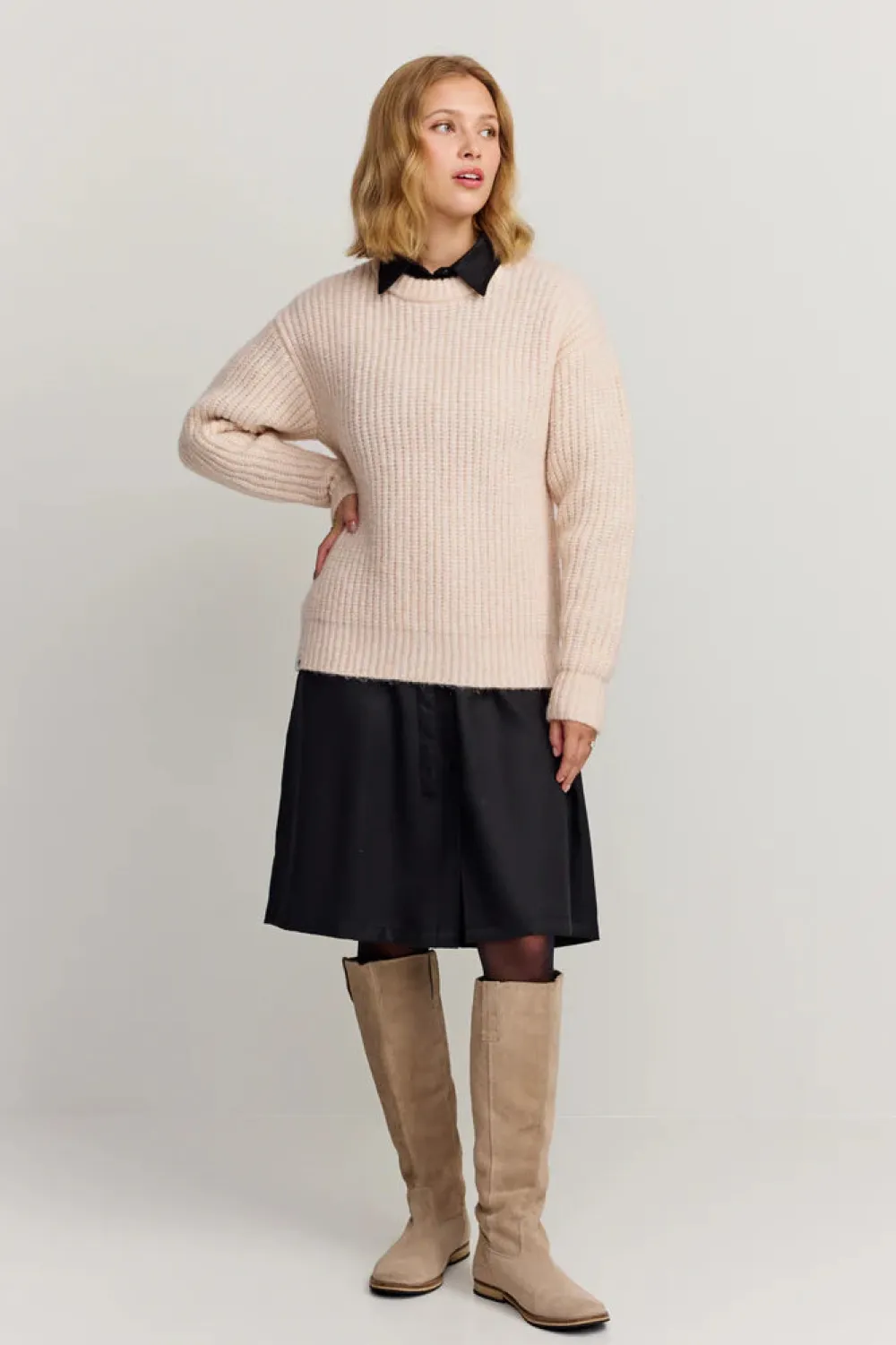 Normaalisti istuva neule, joka on valmistettu villan, nailonin ja lycran sekoituksesta.