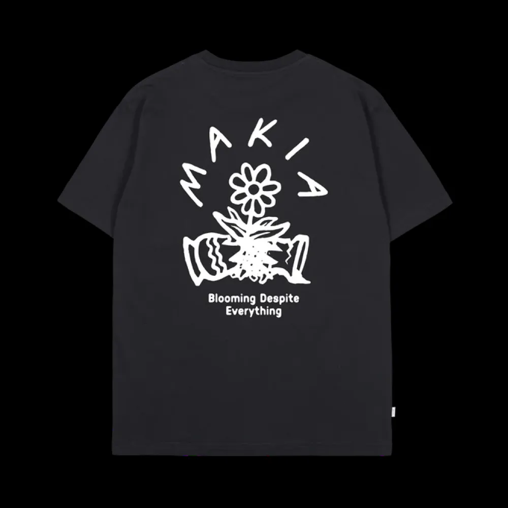 Relaxed fit t-paita jossa pieni printti rinnassa ja iso printti selässä.