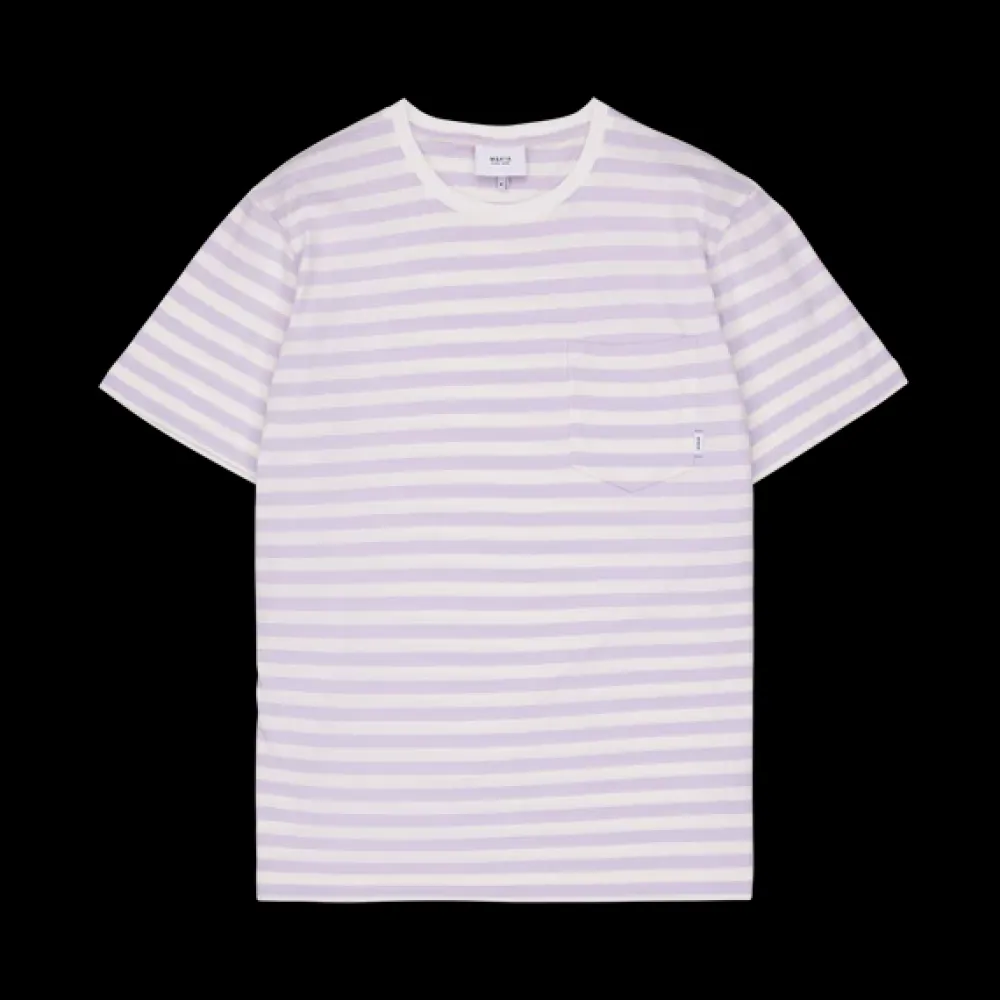 Makian miesten malliston T-paita. Klassinen raitakuosi ja rintatasku, jonka sivussa Makian logo.