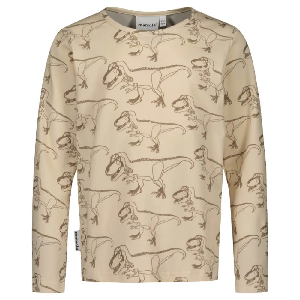 Lasten dinokuosillinen pyjamasetti on valmistettu erittäin pehmeästä ja miellyttävän tuntuisesta luomupuuvillatrikoosta. Materiaalivalinnassa on kiinnitetty huomiota erityisesti siihen, että tuote tuntuisi mahdollisimman hyvälle iholla pienen käyttäjän nukkuessa. Pyjamasetti koostuu leggings-mallisista yöhousuista sekä yöpaidasta.