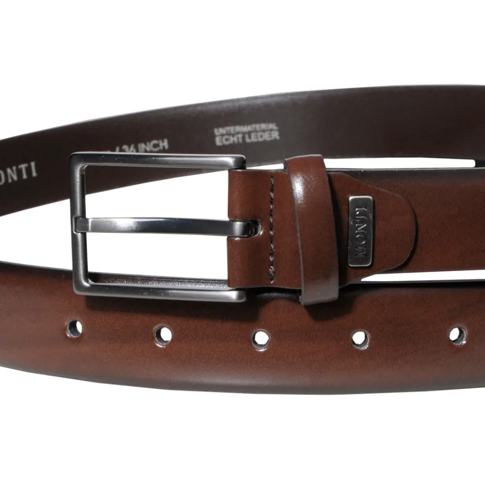 Montin nahkainen pukuvyö. Leveys 3 cm.