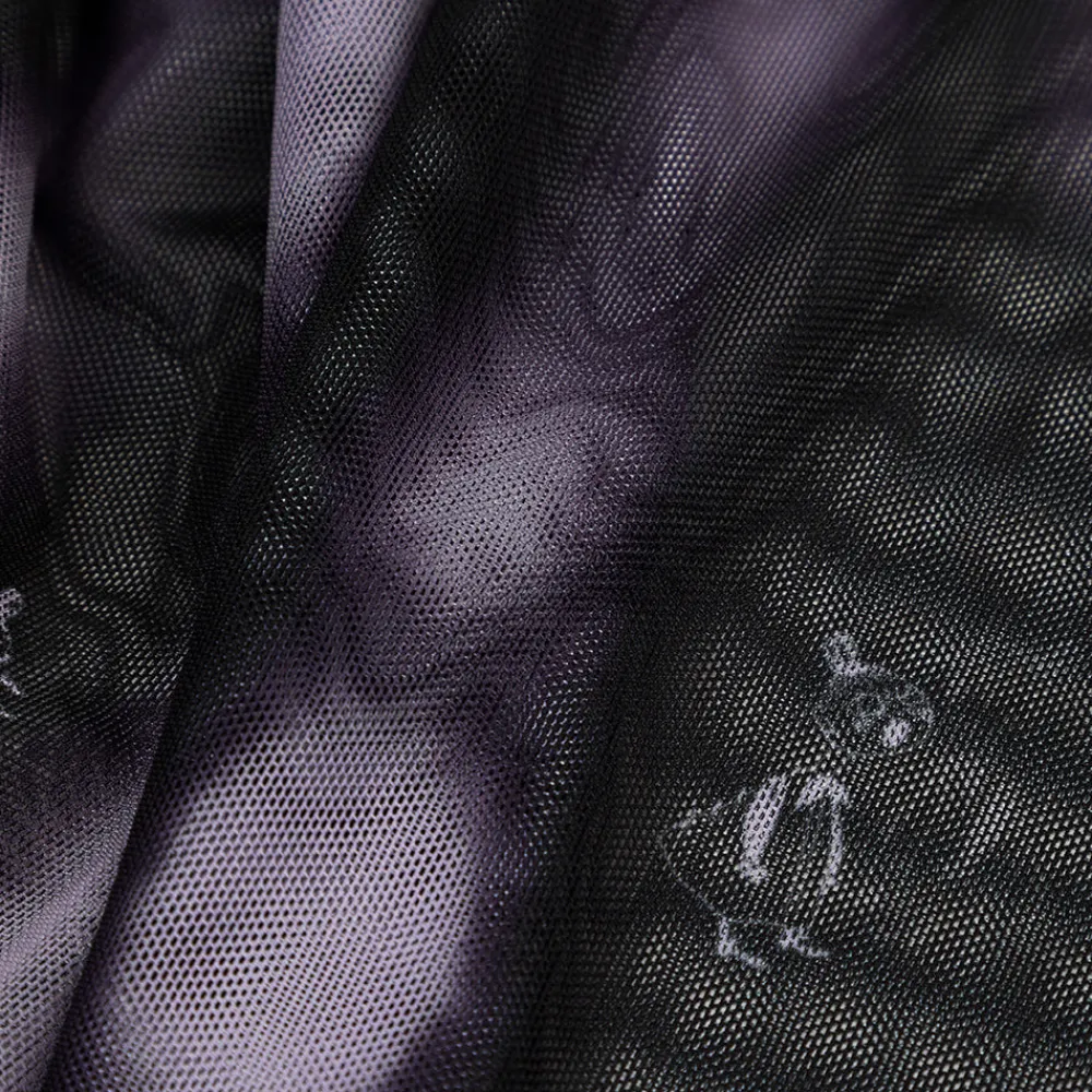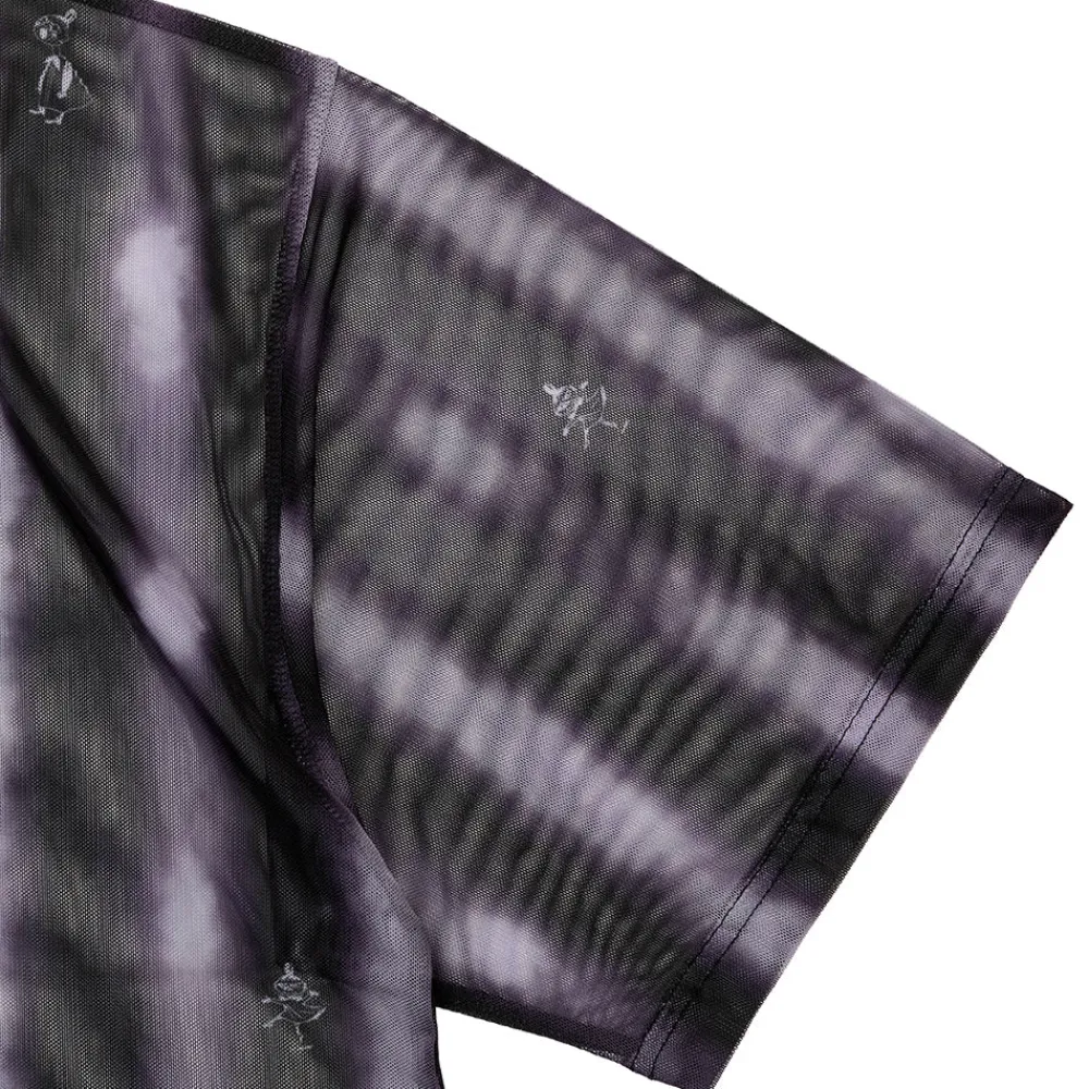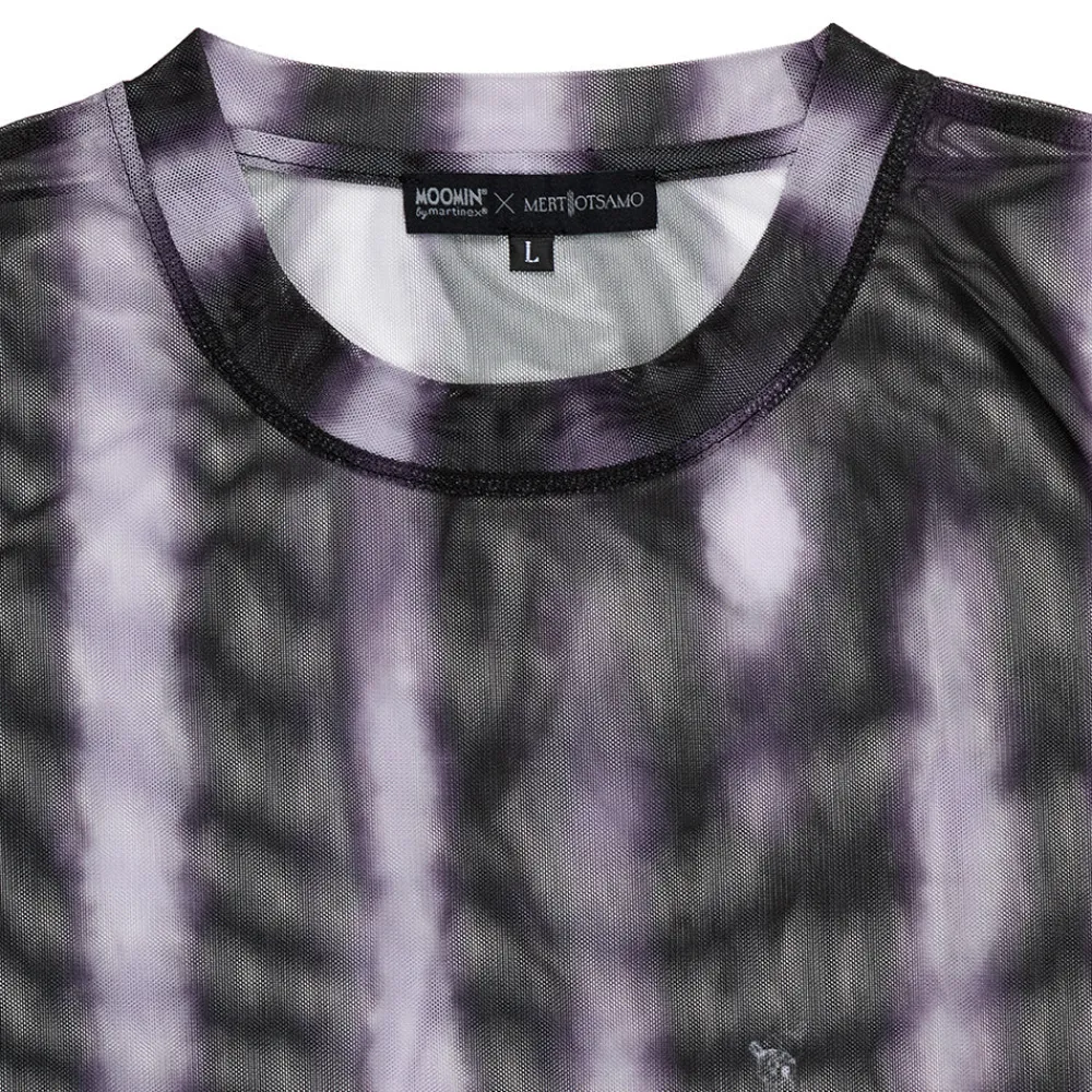 Tyylikkäästi katu-uskottava aikuisten muumiaiheinen T-paita. Väljässä unifit-paidassa on pyöreä pääntie ja lyhyet hihat. Paidan materiaali on polyesterisekoitteesta valmistettua läpikuultavaa mesh-verkkokangasta. Paidan pituus olkapäältä helmaan koossa S on 66 cm.