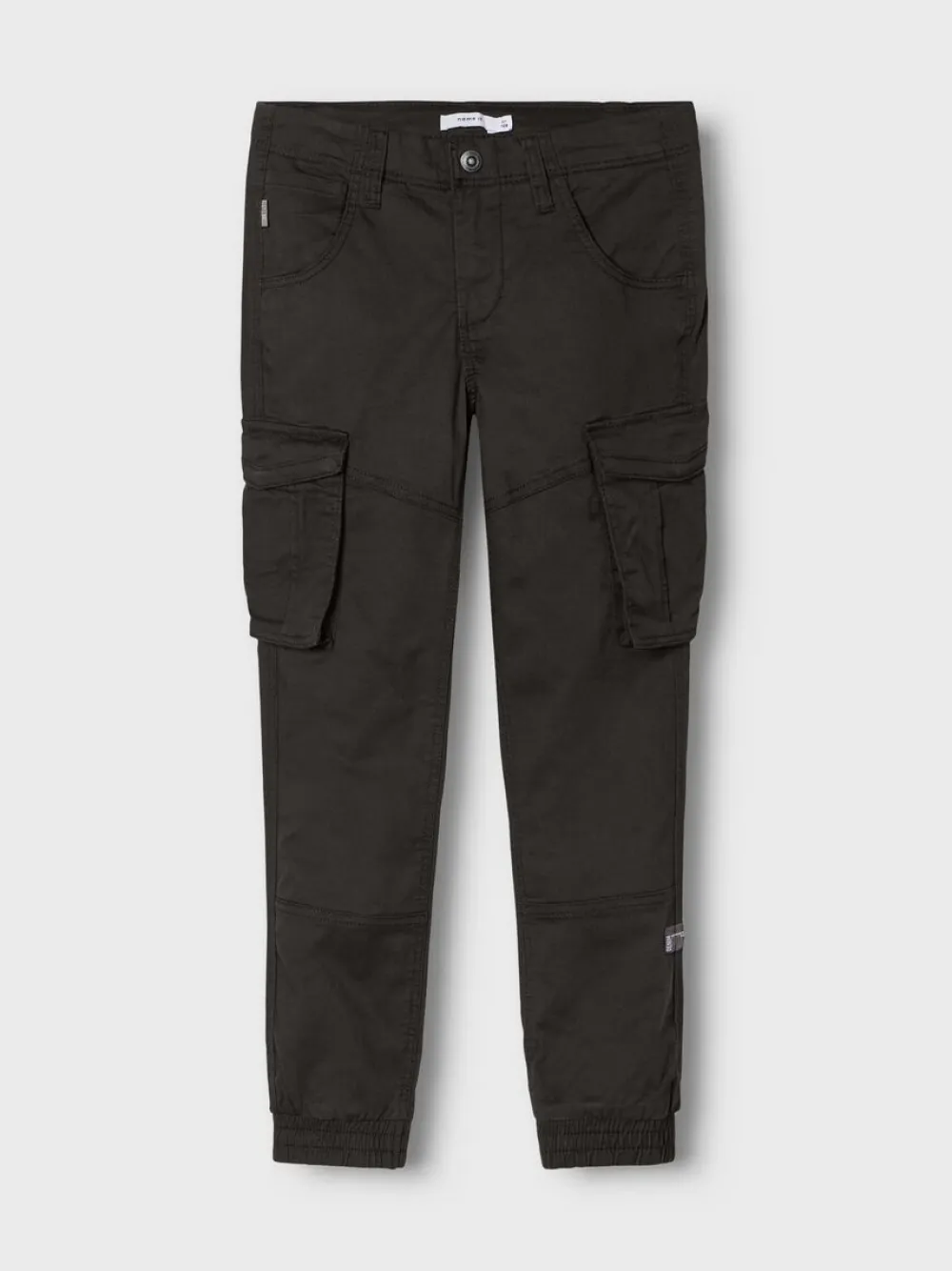Name it rennot twillhousut. Reisitaskuissa neppariläpät ja lahkeissa kuminauhat. Takana koristetaskut.