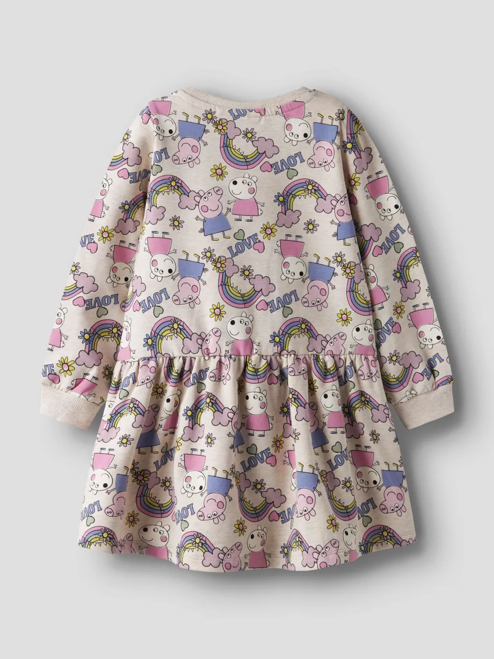 Tämä pitkähihainen mekko on suunniteltu lapsen aktiiviseen arkeen: joustava ja pehmeä materiaali varmistaa mukavuuden ja liikkumavapauden koko päivän. Mekon klassinen paita-henkinen leikkaus tekee siitä monikäyttöisen — se sopii kerhopäivään, leikkeihin ja arkeen. Pyöreä pääntie ja pehmeät resorit hihoissa tekevät pukeutumisesta helppoa, ja Pipsa Possu -kuosi tuo ripauksen leikkisyyttä lapsen vaatekaappiin.