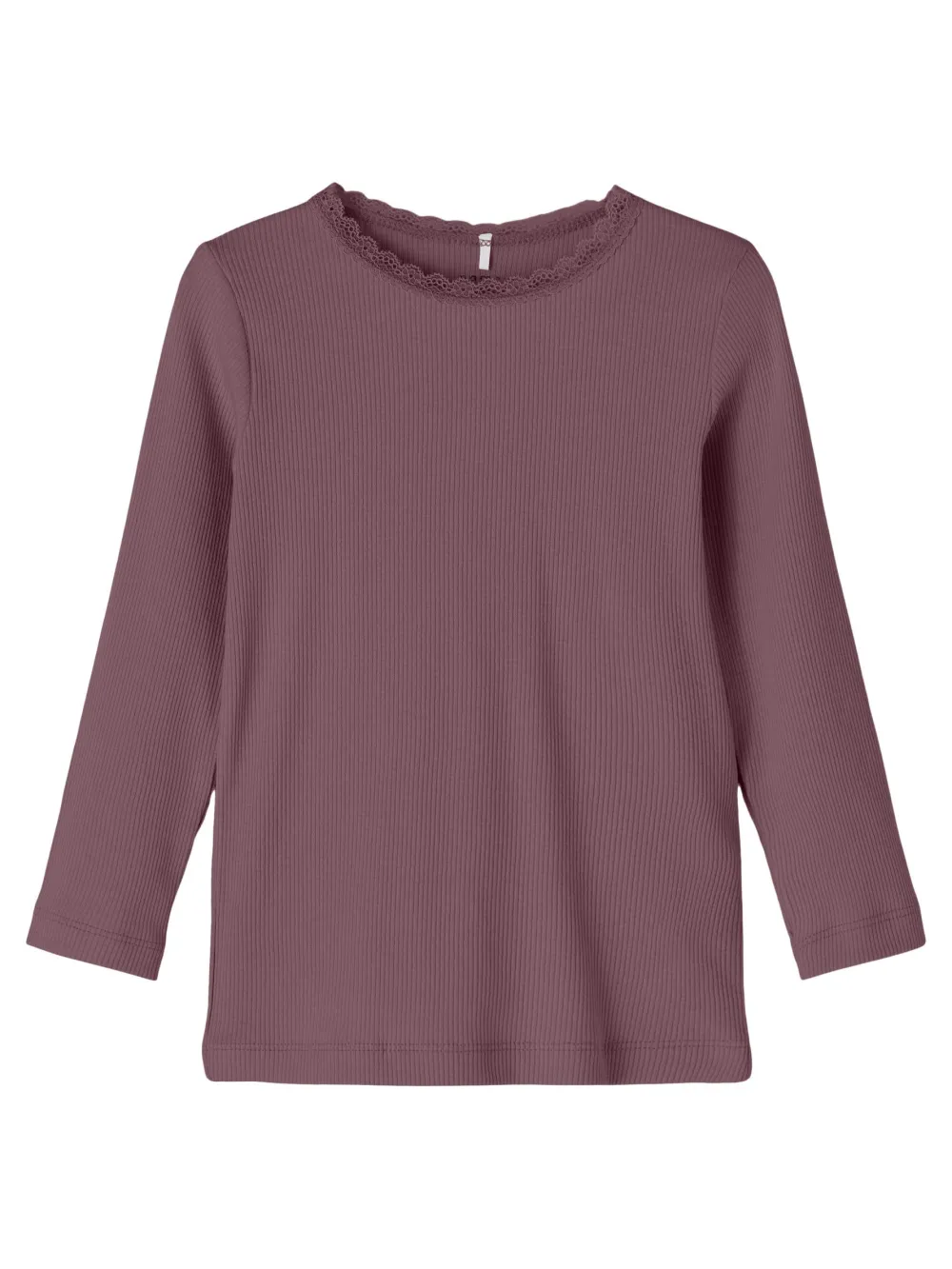 Name It lasten pitkähihainen paita. Paidan pääntiellä kapea pitsi yksityiskohtana.