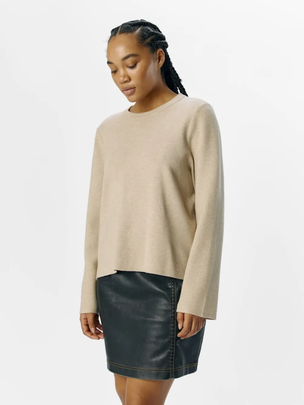 Objectin neule pehmeästä materiaalista. Neuleessa on pyöreä pääntie ja normaali istuvuus.