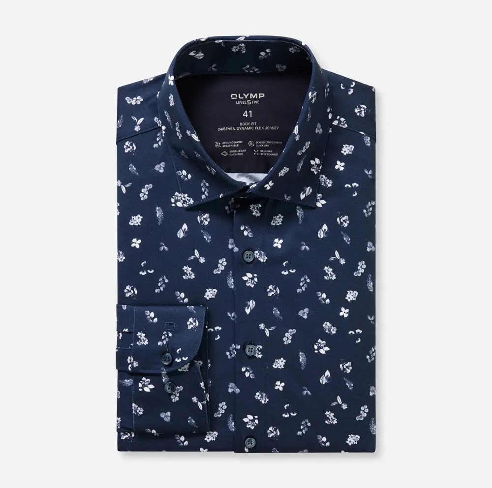 OLYMP Level Five 24/7 Body Fit Jersey on huoliteltu ja monikäyttöinen kauluspaita, joka yhdistää tyylikkään ilmeen ja mukavan käyttökokemuksen. Lean-mallinen body fit-leikkaus korostaa siistiä siluettia ilman liiallista kireyttä, ja moderni New York Kent -kaulus tuo ajattoman eleganssin. Paita on valmistettu laadukkaasta Comfort Stretch -materiaalista, joka sisältää joustavaa elastaania puuvillan kaverina — tämä takaa hyvän liikkumisvapauden ja varman istuvuuden koko päivän.