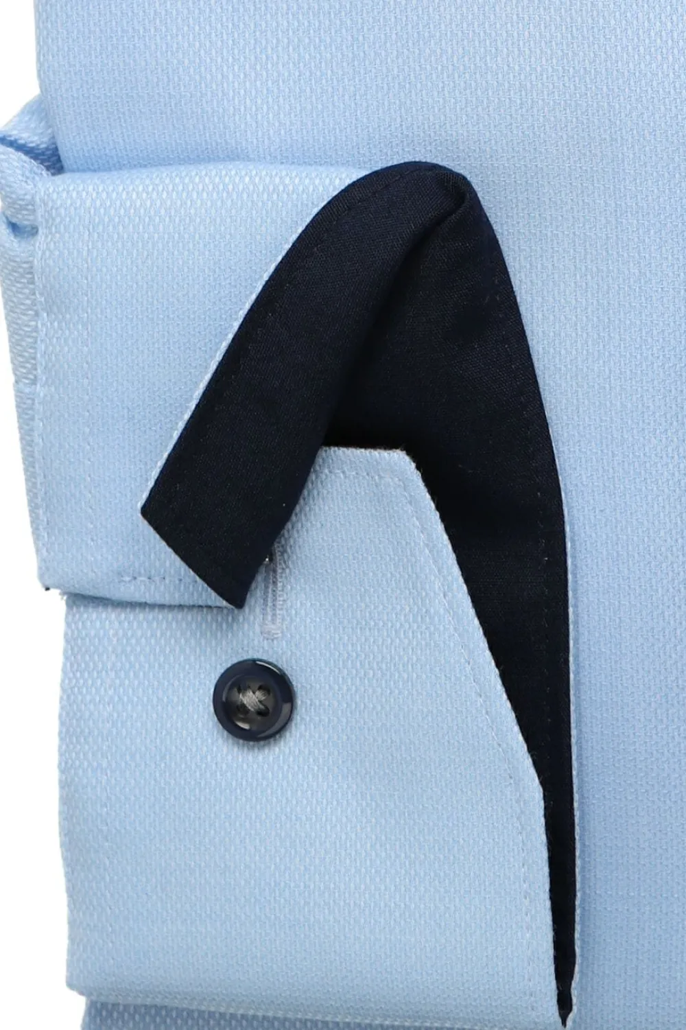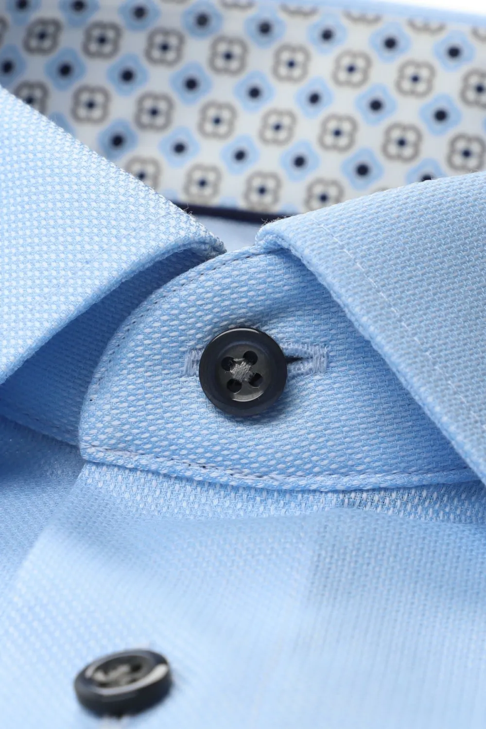 Paita on klassisesti yksivärinen sininen, siinä on New Kent -kaulus ja pitkät hihat säätömaneeteilla, mikä tekee siitä monikäyttöisen valinnan niin toimisto- kuin vapaa-ajan asuihin. Lisäksi rintatasku on käytännöllinen ja viimeistelee asun hillityn tyylikkäästi.