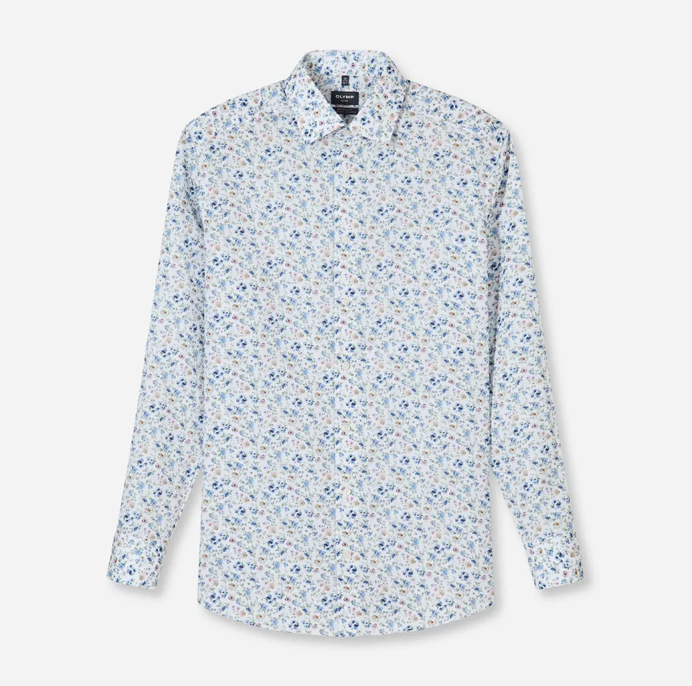 Modern fit ‑leikkaus istuu nykyaikaisesti ja kevyesti muotoillen, joten paita tuntuu mukavalta käytössä mutta näyttää silti huolitellulta. Klassinen New Kent ‑kaulus toimii erinomaisesti niin solmion kanssa kuin ilman, ja rintatasku hienovaraisella brodeerauksella lisää pieneen yksityiskohtaan tyylikkyyttä