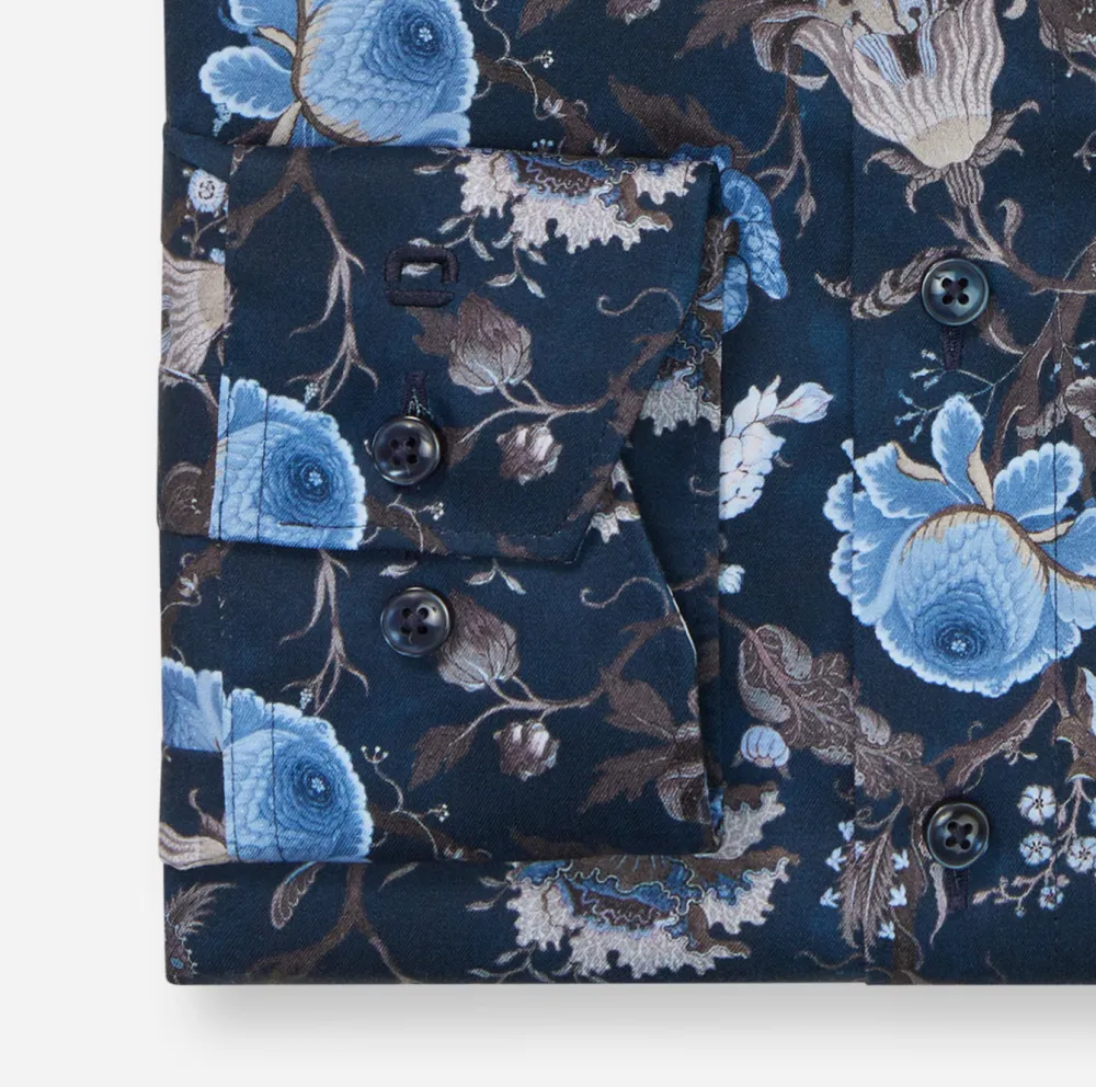 Tässä vartalonmyötäisessä OLYMP Luxor -business-paidassa on kukkakuvio, jossa luonnolliset sävyt vaihtelevat pehmeän vihreästä siniseen ja trendikkääseen violettiin. Yksilöllinen ja tyylikäs. Hienosta puuvillasta kudottu, hengittävä, ihoystävällinen ja ei-silittämätön. Viimeistelty tyylikkäällä New Kent -kauluksella.