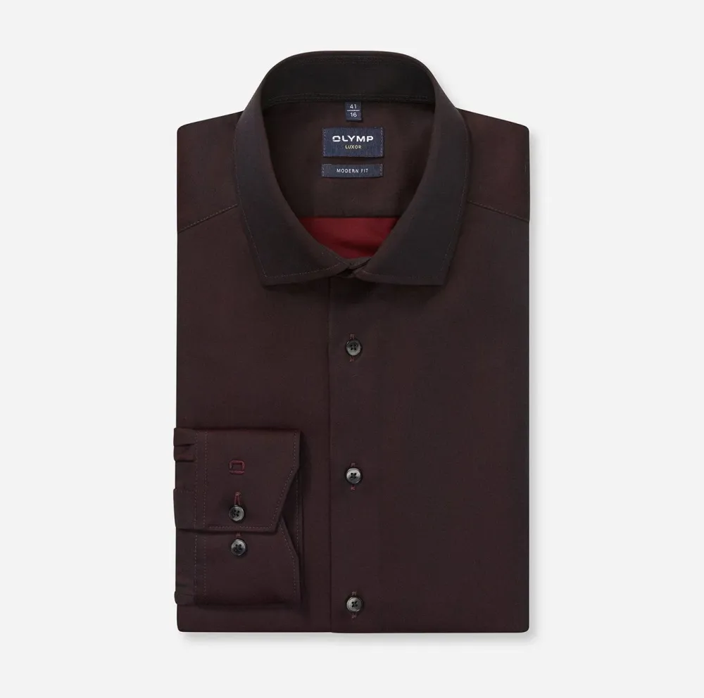 Elegantti miesten Club OLYMP Luxor -paita rohkean bordeaux-sävyssä. Hieno 100-prosenttisesta puuvillasta valmistettu kangas vakuuttaa elegantilla kiillollaan, maskuliinisella tyylillään ja vartalonmyötäisellä leikkauksellaan. Hienojen lankojen erityisominaisuuksiin kuuluvat ihoystävällinen mukavuus ja helppohoitoisuus. Viimeistelevästi kosmopoliittinen Global Kent -kaulus. Ei tarvitse silittää.