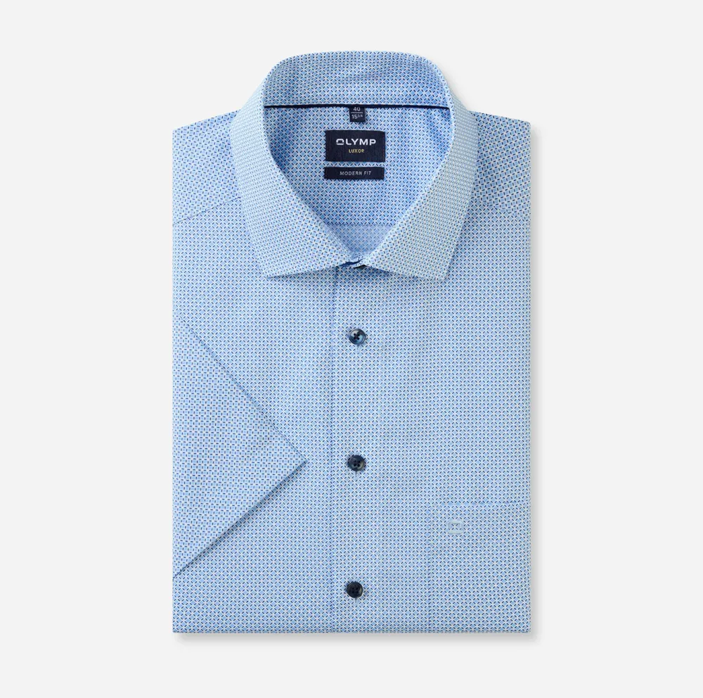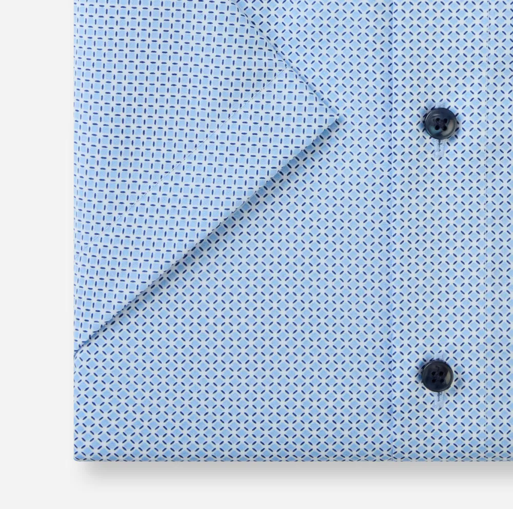 OLYMP Luxor Modern Fit -kauluspaita yhdistää klassisen muotoilun ja modernin istuvuuden, tarjoten täydellisen valinnan niin työpäivään kuin juhlatilaisuuksiin. Sen hienostunut sininen sävy ja hillitty kuviointi tuovat asuusi ripauksen eleganssia.