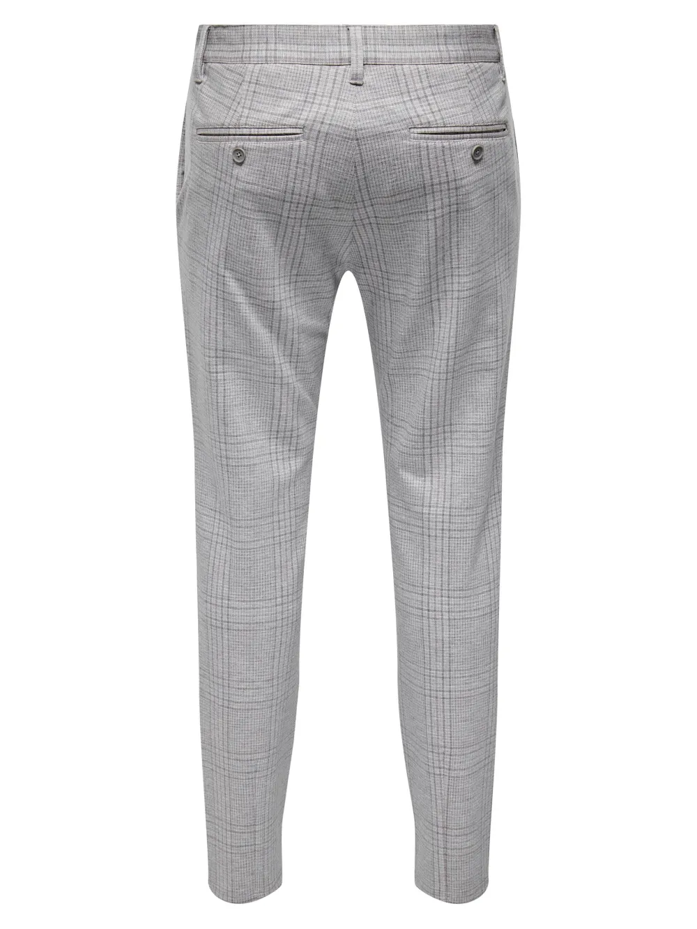 Miesten trendikkäät ruudulliset housut, kapea istuvuus, kapenevat lahkeet. Edessä vetoketju, taskut sivuilla ja takana.