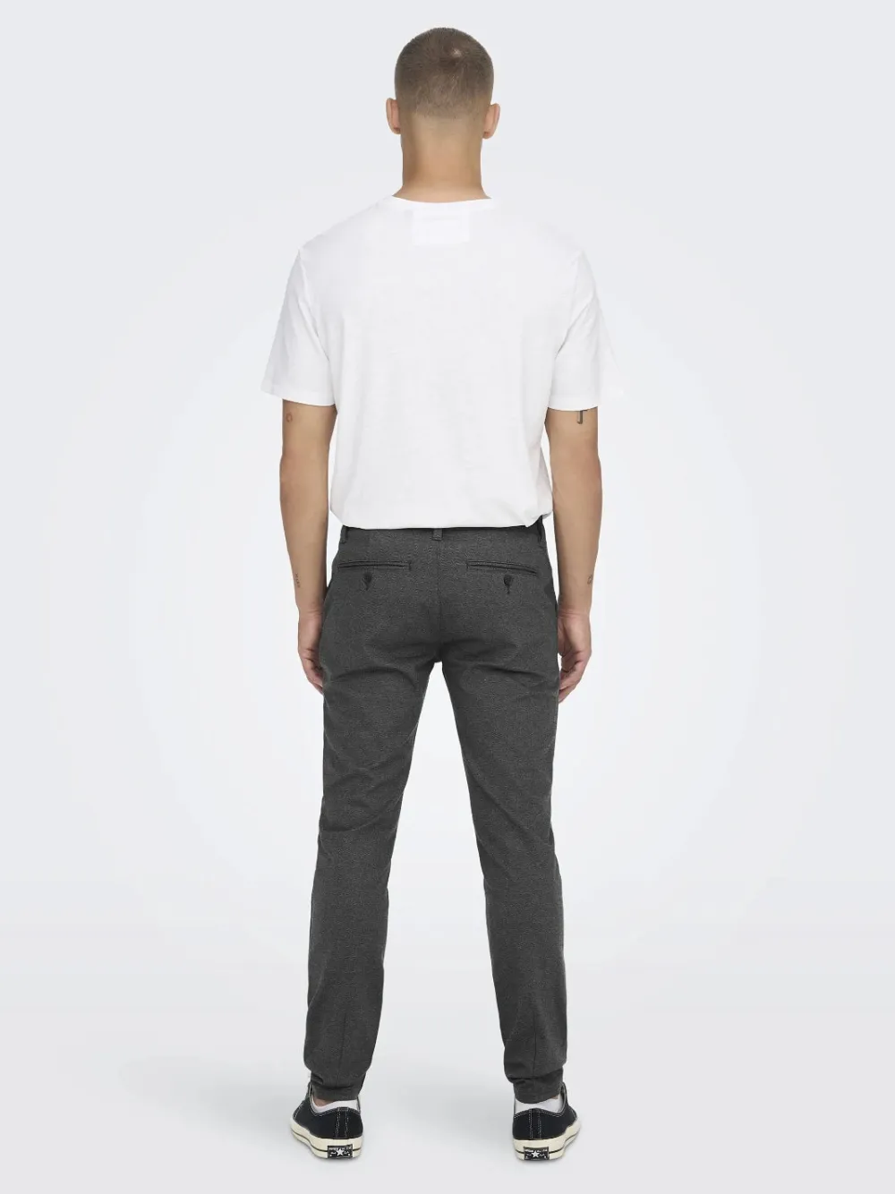 Only & Sons miesten chinot. Housut ovat joustavat. Housuissa edessä ja takana taskut. Yksityiskohtana viisi vyölenkkiä.