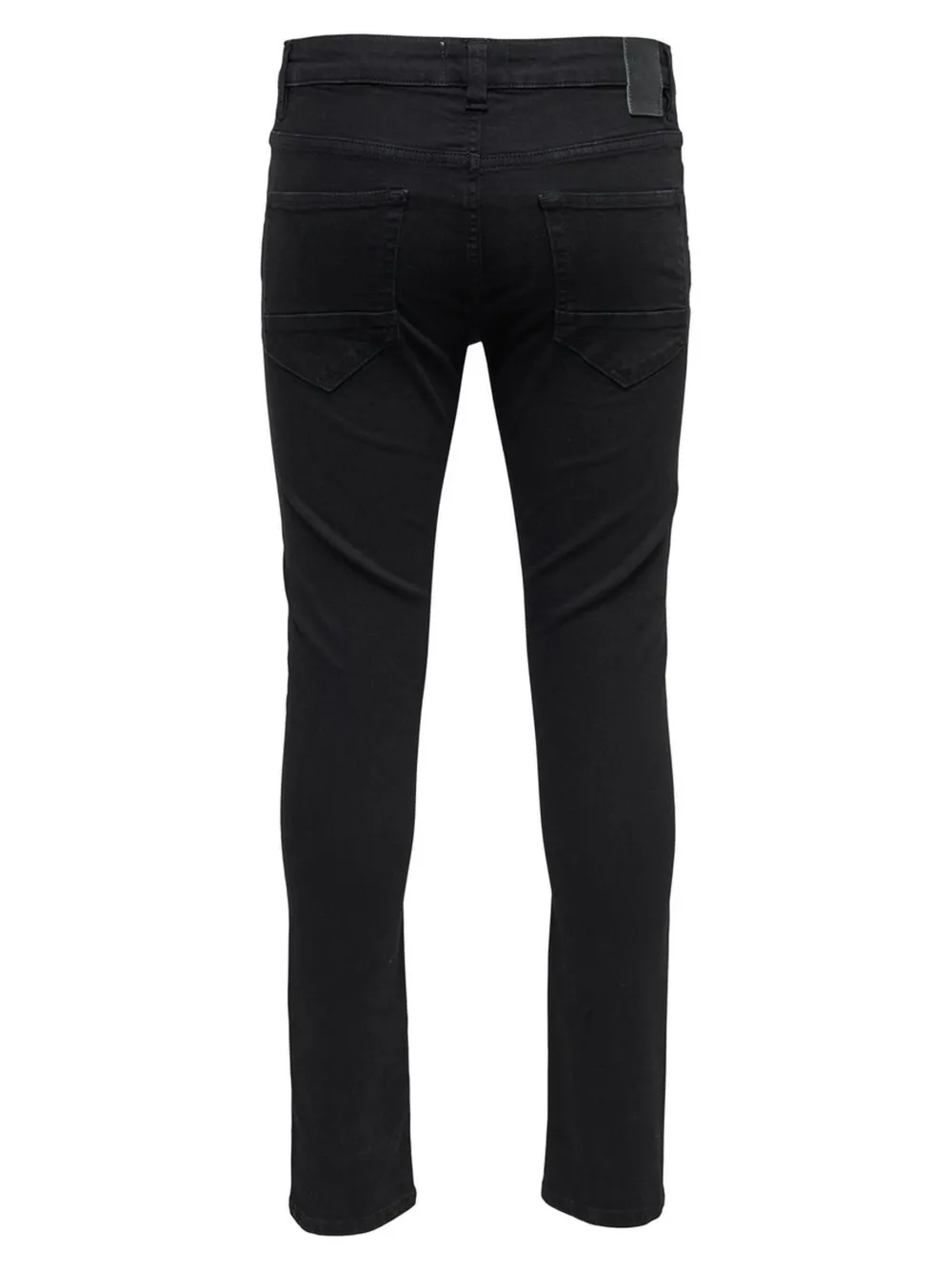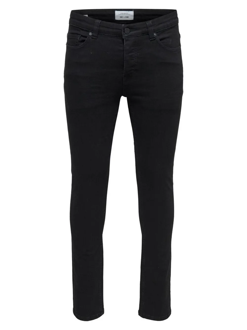 Only&Sons joustavat, kapeat farkut. Nappikiinnitys, normaali vyötärönkorkeus.