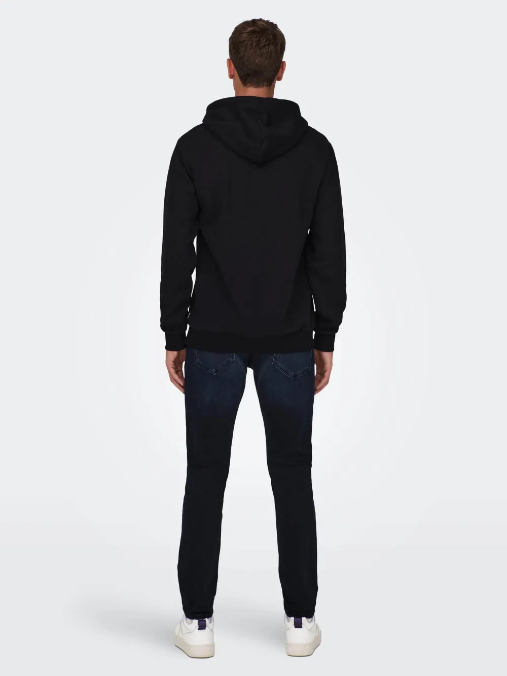 Miesten klassinen huppari kengurutaskulla. Helmassa ja hihansuissa resorit.