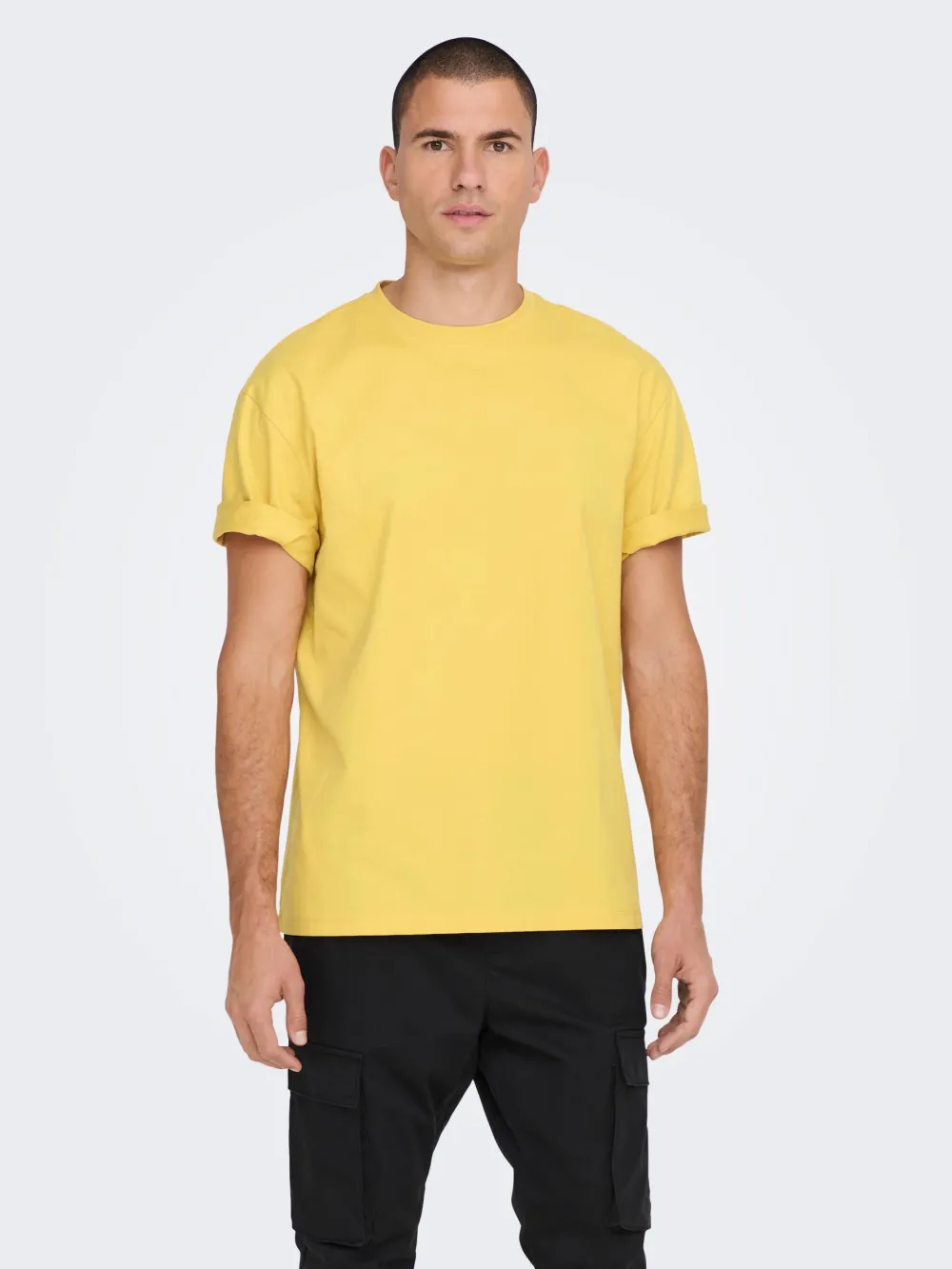 T-paita on miellyttävää puuvillaa ja mitoituksena hiukan leveähkö.