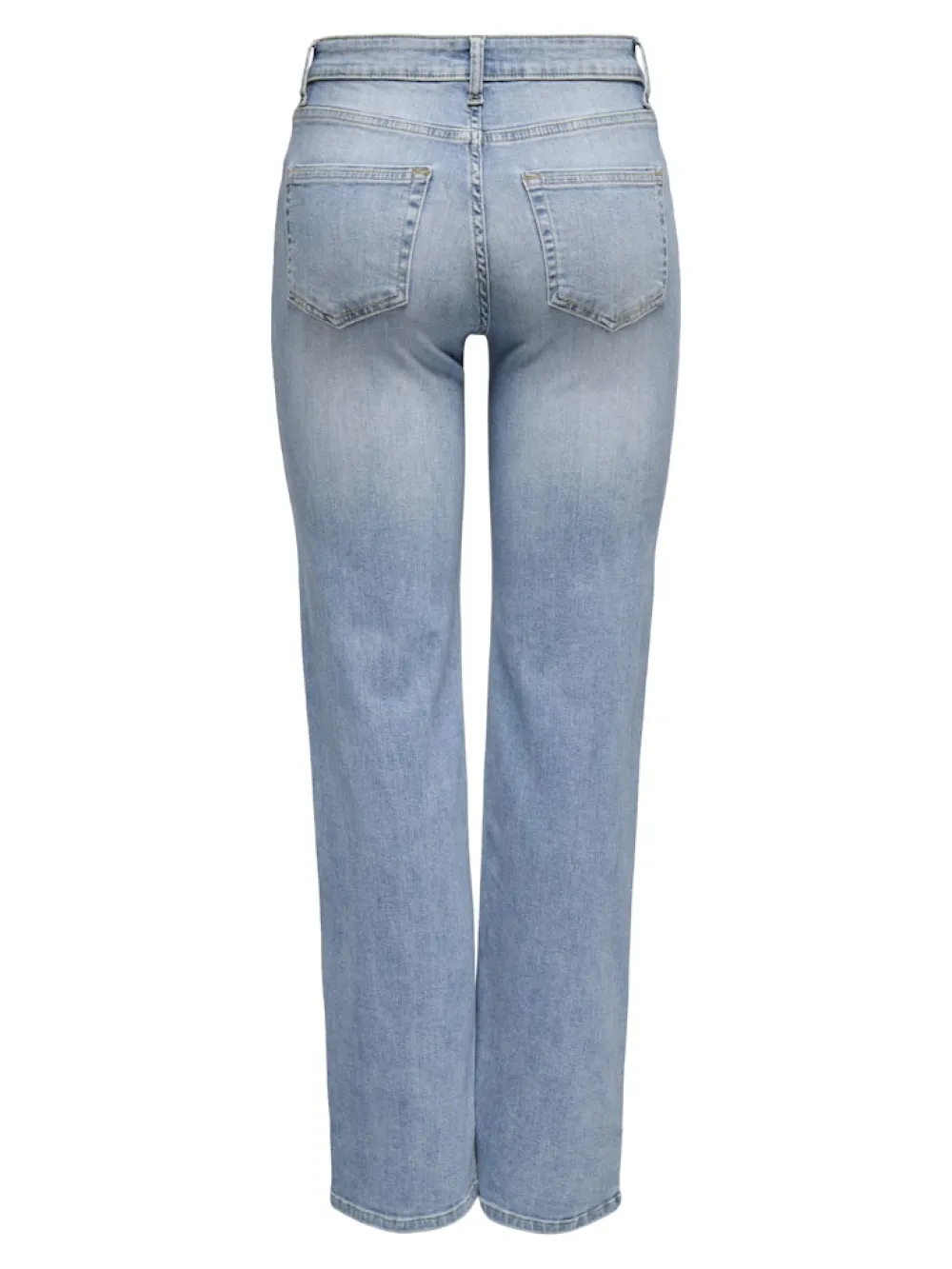 ONLY ONLBLUSH Mid Straight -farkut Light Blue Denim -sävyssä yhdistävät ajattoman suoran leikkauksen ja mukavan materiaalin jokapäiväiseen käyttöön. Farkuissa on mid-waist-vyötärö, napin ja vetoketjun suljenta sekä vyölenkit, mikä tekee niistä monipuoliset ja helppokäyttöiset. Viiden taskun malli tarjoaa säilytystilaa, ja kevyt elastisuus takaa hyvän joustavuuden ja istuvuuden. Materiaalina on 92 % puuvillaa, 6 % elastomultiesteriä ja 2 % elastaania, mikä antaa farkuille mukavuutta ja kestävyyttä.
