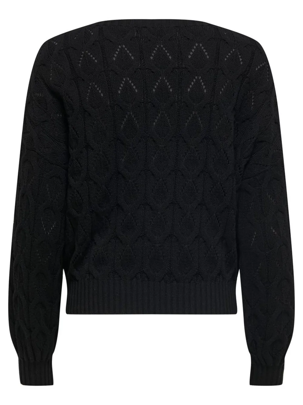 Onlyn puuvillainen neulepaita, jossa on kaunis kuvioitu pinta. Avara pääntie ja joustavat ribbneulotut resorit hihansuissa ja helmassa.