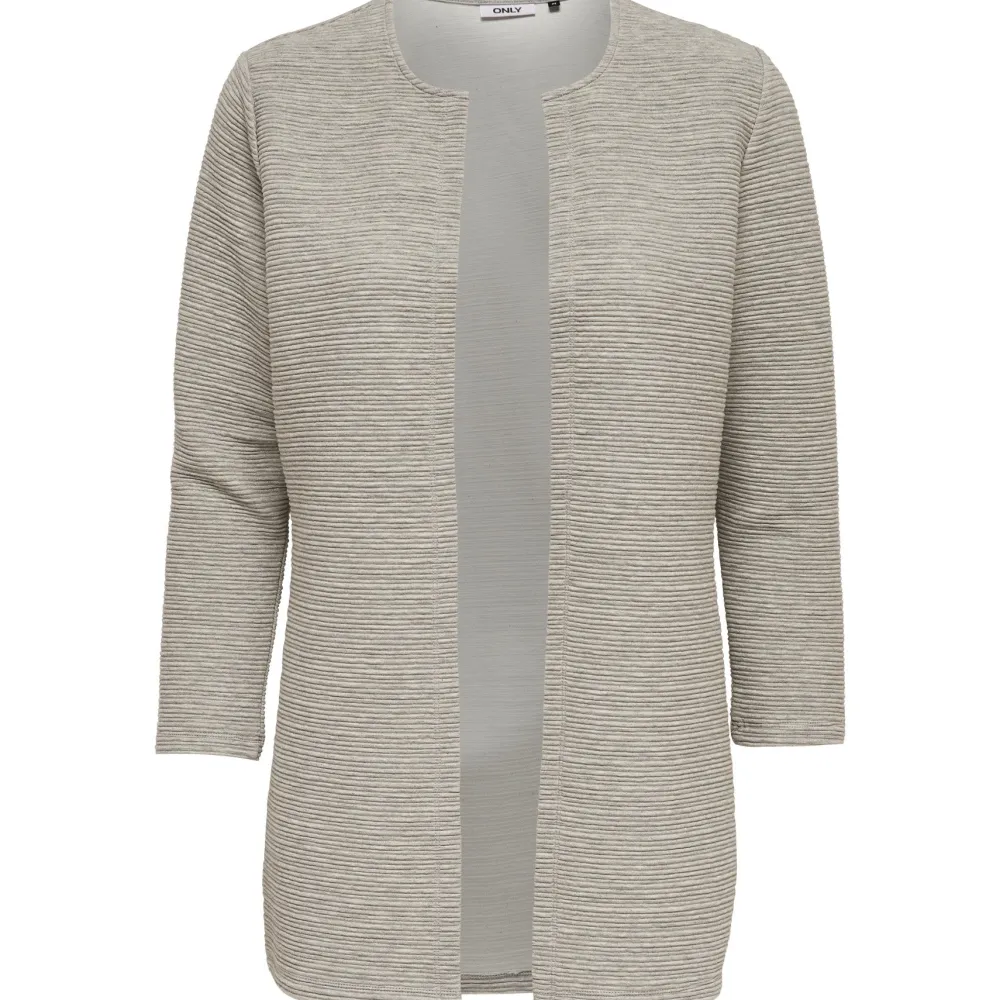 Only naisten trikootakki 7/8-hihoilla. Kankaassa raitastruktuuripinta, edestä avoin. Koossa S pituus n.72 cm.