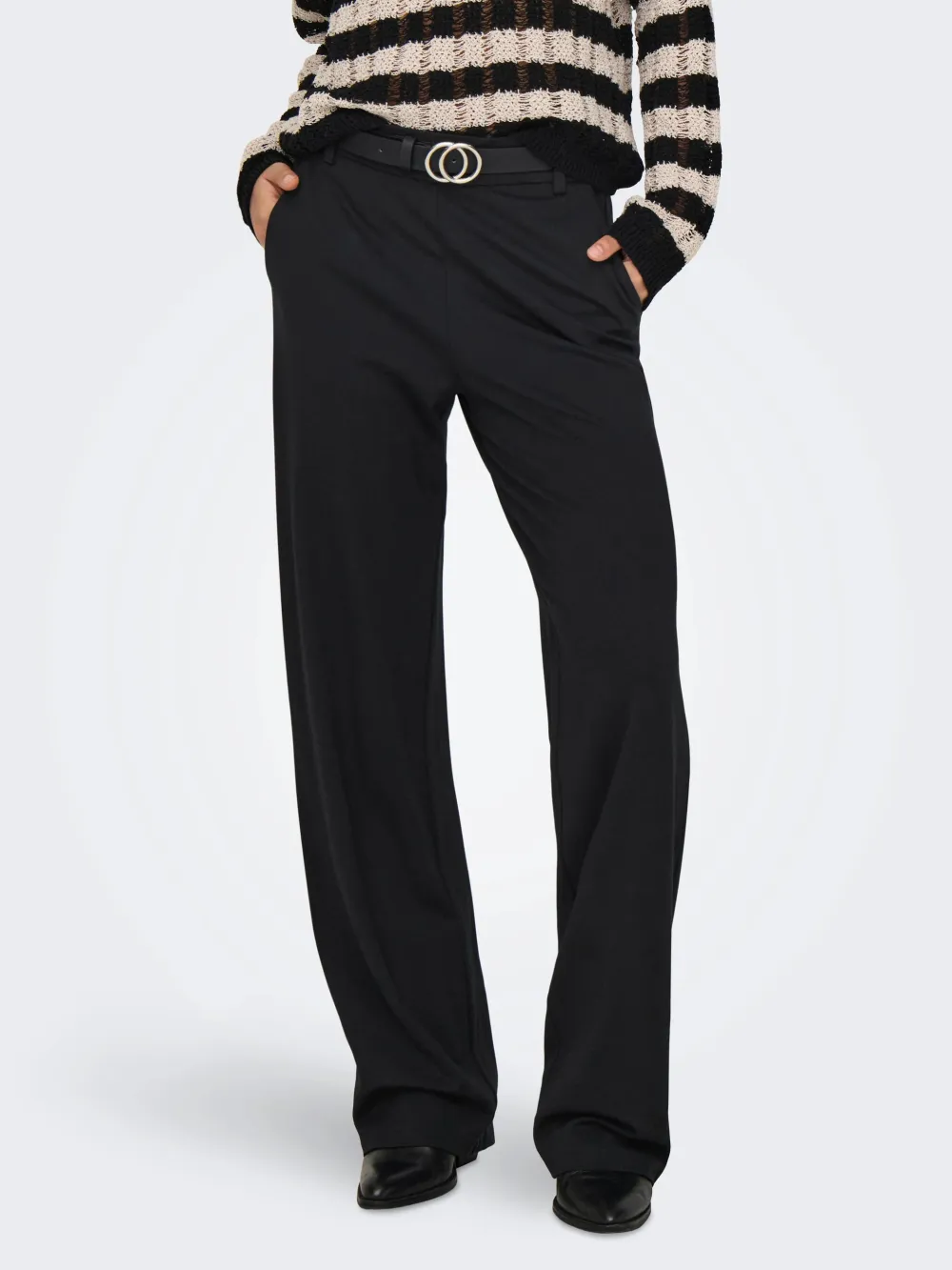 Housuissa on klassinen leikkaus, jotka laskeutuvat tyylikkäästi ja tarjoavat mukavuutta koko päivän ajaksi. Etu- ja takataskut lisäävät käytännöllisyyttä. Yhdistä nämä housut esimerkiksi neuleen tai paitapuseron kanssa, niin saat elegantin ja ajattoman asukokonaisuuden.