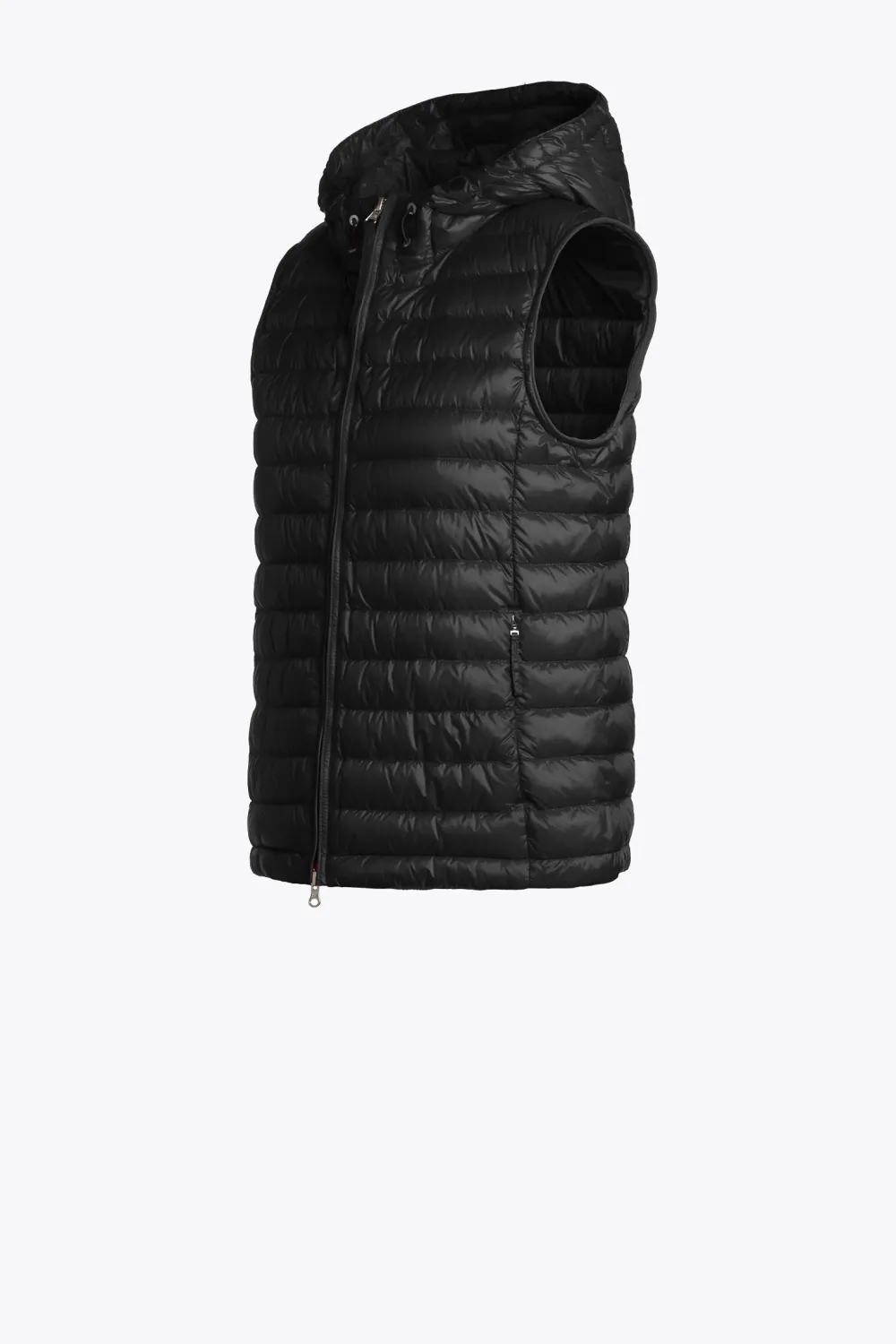 Naisten kevyt, beigenvärinen, hupullinen untuvaliivi. Naisellinen leikkaus, kangas kevyttä vettähylkivää nailonia, täyte ankanuntuvaa. Edessä vetoketjulliset taskut. Hupun reunassa kiristysnyöri, takana huppua muotoileva kiritysnyöri. Takana selässä vetoketjulla aukeava laskos, laskoksen pohja luonnonvalkoinen.