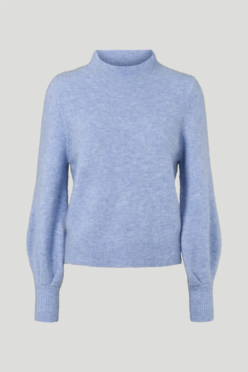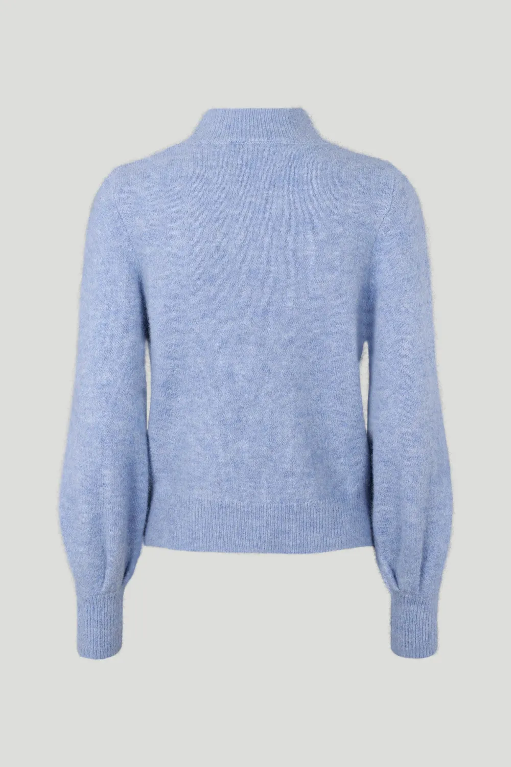 klassinen neule, jossa on pyöreä pääntie, hieman lyhyt pituus ja leveät ribbiresorit pallohihoissa. Naisellinen siluetti, jossa on pehmeä rakenne ja hienostunut viimeistely.