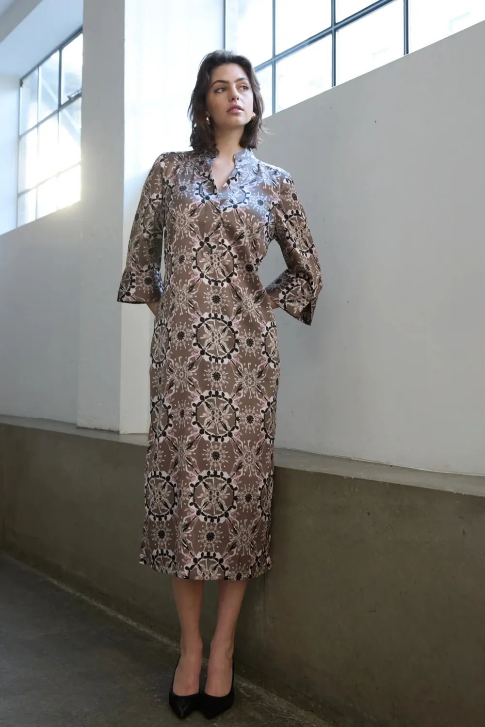 PBO:n Simbia on mekko, jossa on V-pääntie, pystykaulus ja ¾-hihat. Graafinen kuvio ja väljä istuvuus antavat modernin ja elegantin ilmeen. Yhdistä korkeiden saappaiden ja näyttävien korujen kanssa hienostuneeseen iltalookiin tai käytä sitä lenkkareiden ja farkkutakin kanssa arkeen.