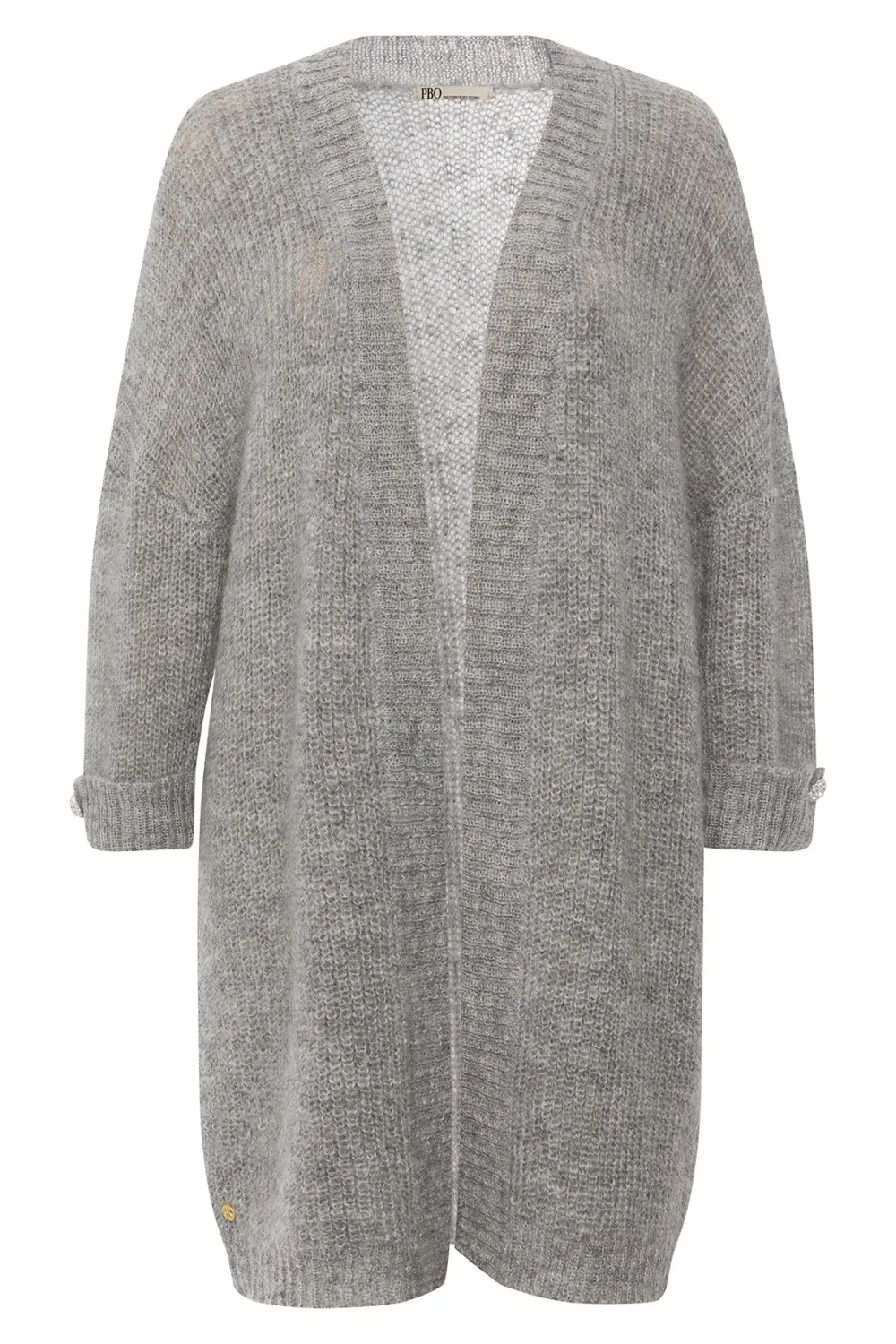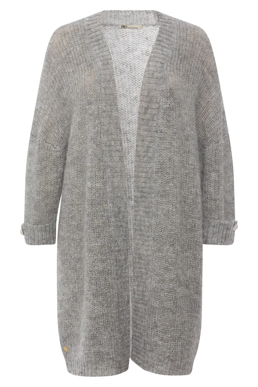 Mohair-sekoite neule, jossa on korkea kaulus. Neuleessa on sivusaumoissa halkiot, jotka suljetaan kultaisilla napilla.
