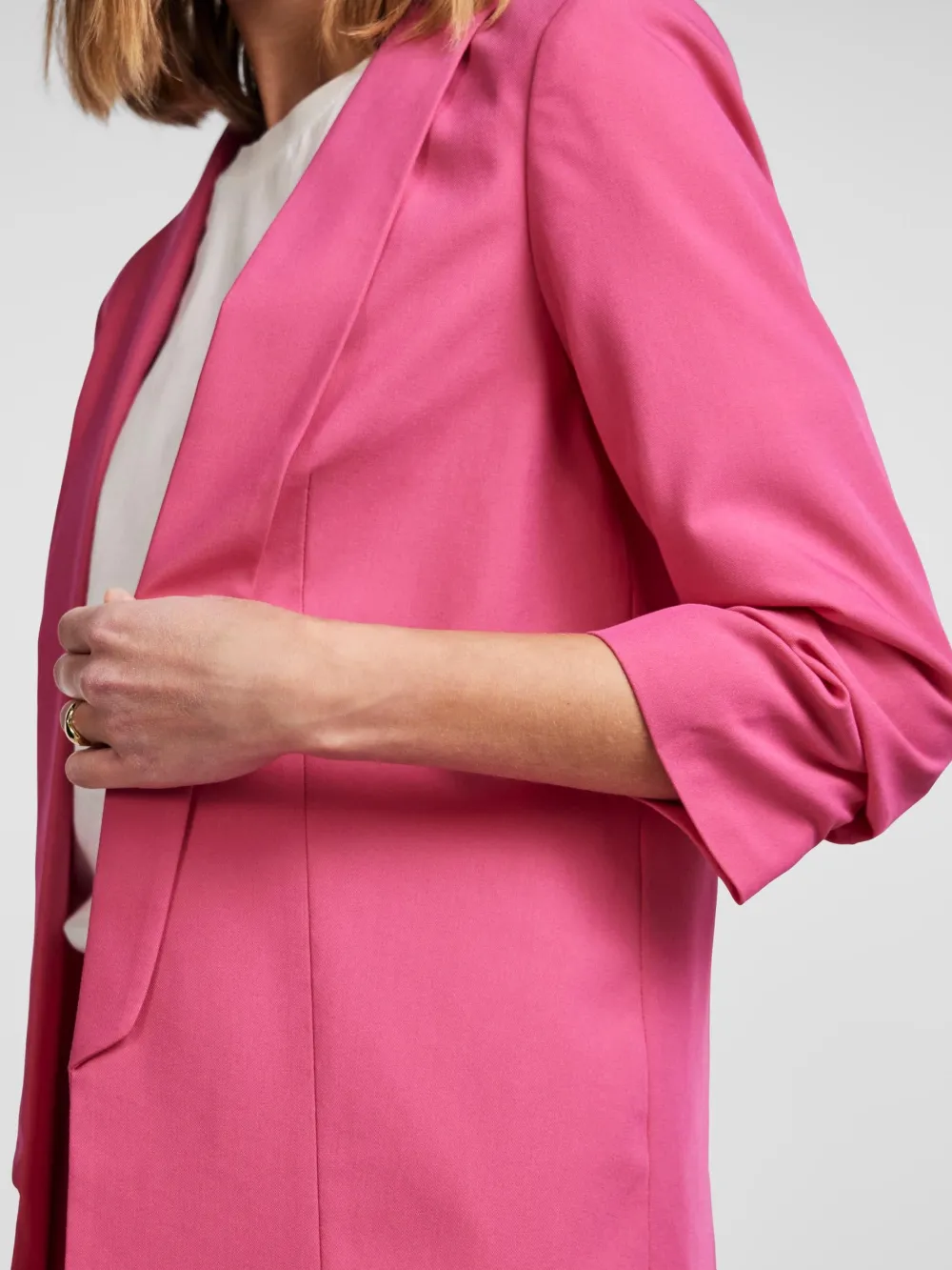 Pieces rento, pitkä bleiseri – 3/4 hihat – Normaali mitoitus – Valkaisu kielletty – Rumpukuivaus kielletty – Silitys keskilämpötilalla
