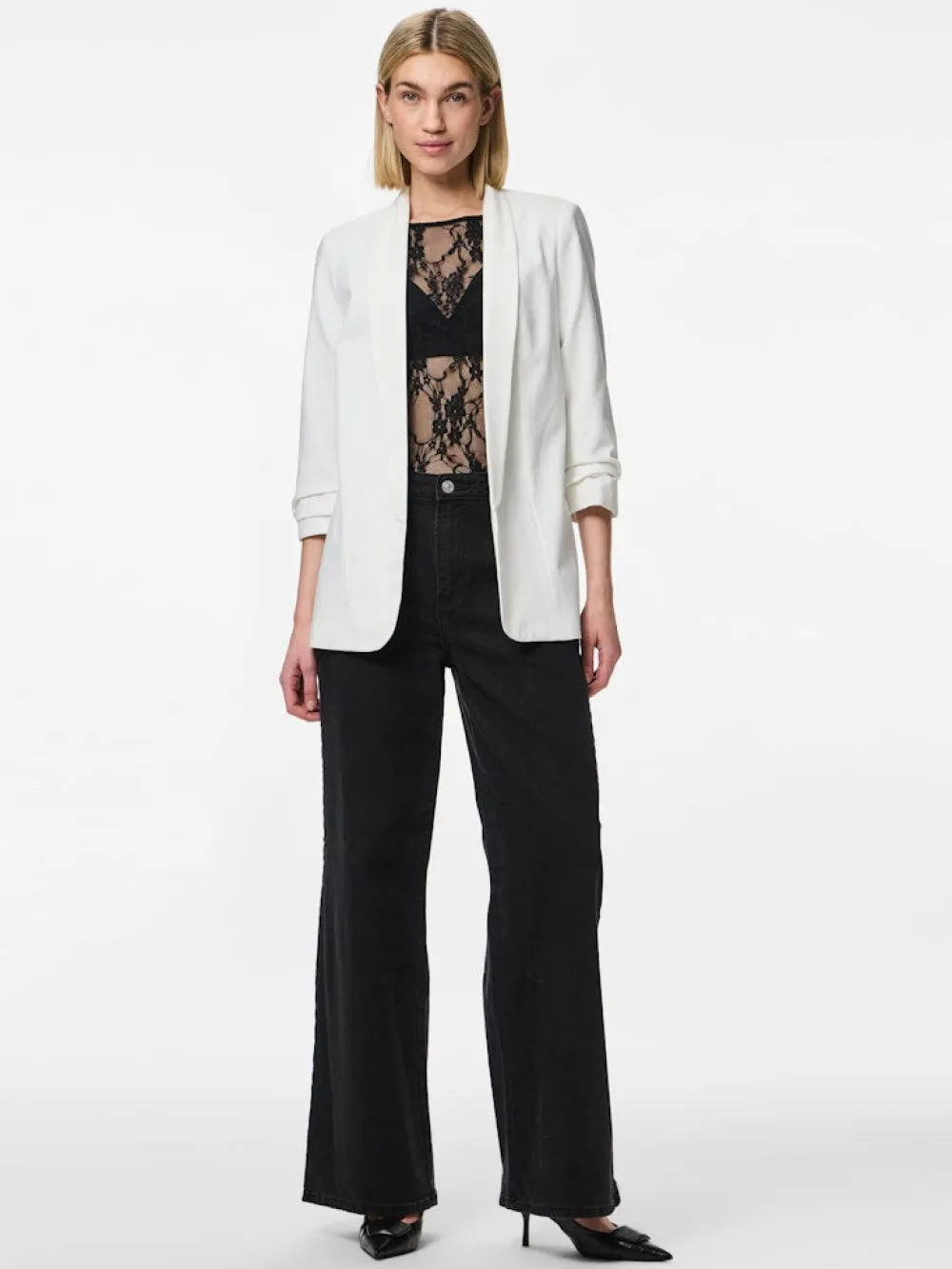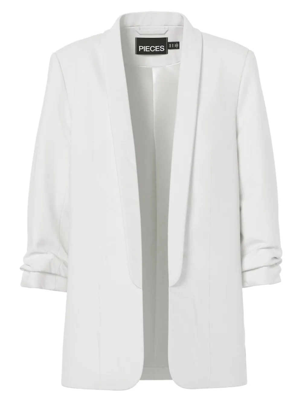 Pieces rento, pitkä bleiseri – 3/4 hihat – Normaali mitoitus – Valkaisu kielletty – Rumpukuivaus kielletty – Silitys keskilämpötilalla