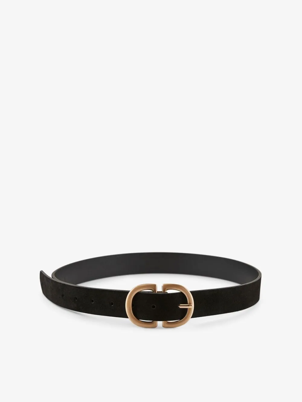 Naisten mokkanahkainen vyö, leveys 2,9 cm. Kullanvärinen solki. .
