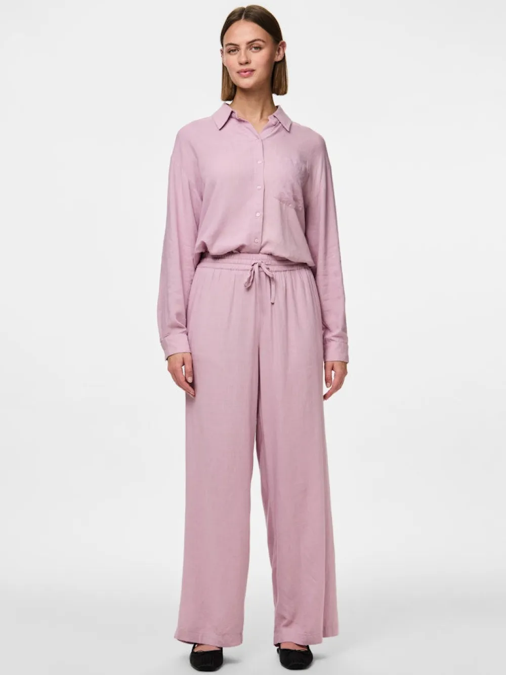 – Pellavasekoiteiset leveälahkeiset housut