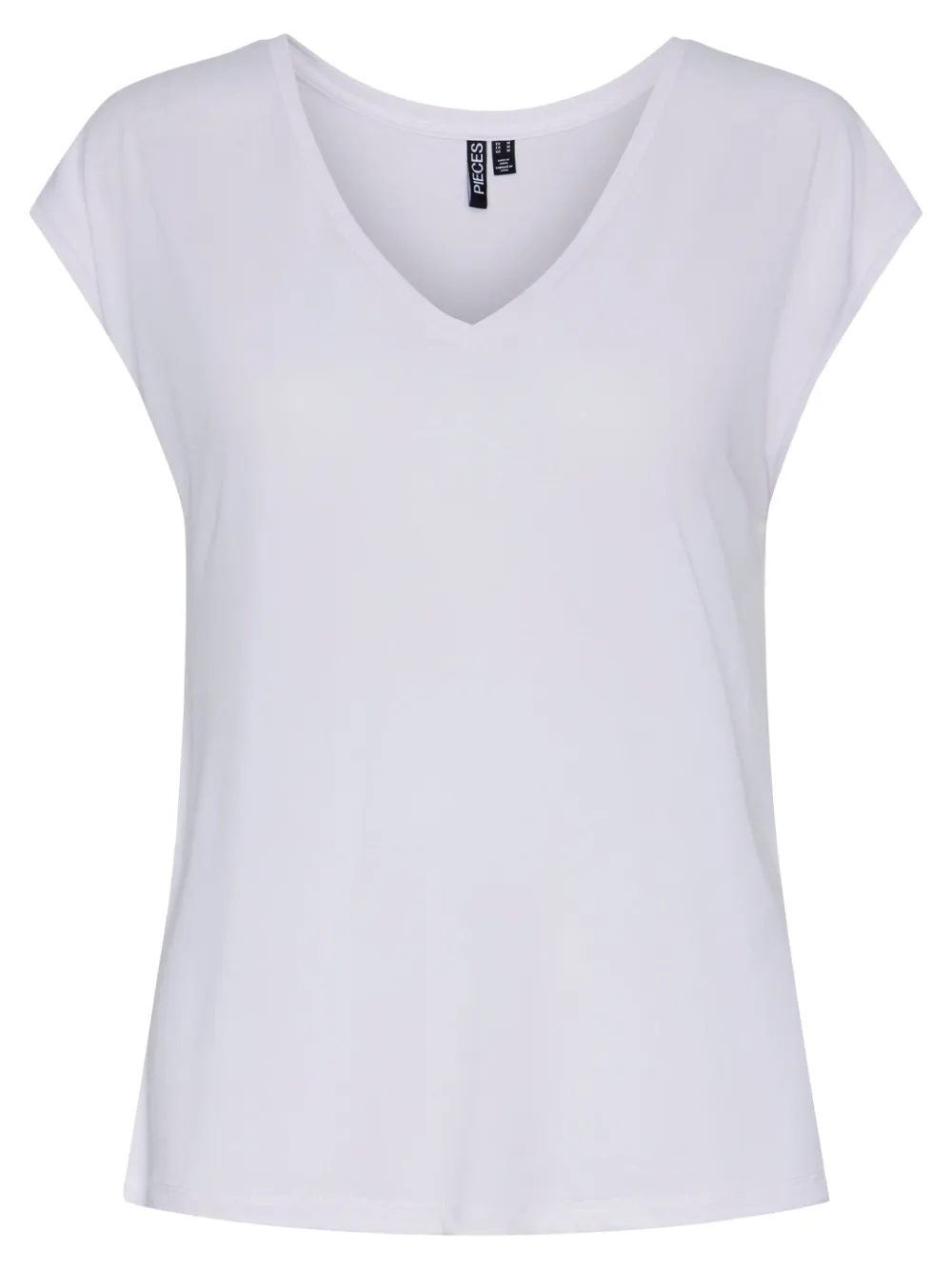 Pieces T-paidassa on joustava ja miellyttävä laatu. Pääntienä kaunis V. Suora istuvuus.