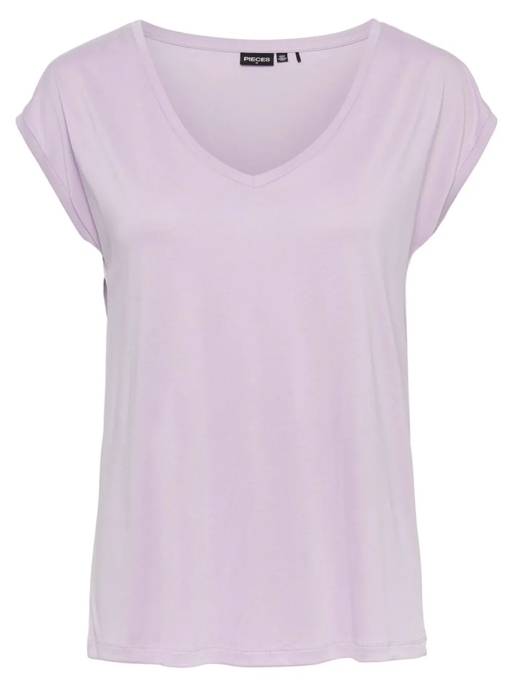 Pieces T-paidassa on joustava ja miellyttävä laatu. Pääntienä kaunis V. Suora istuvuus
