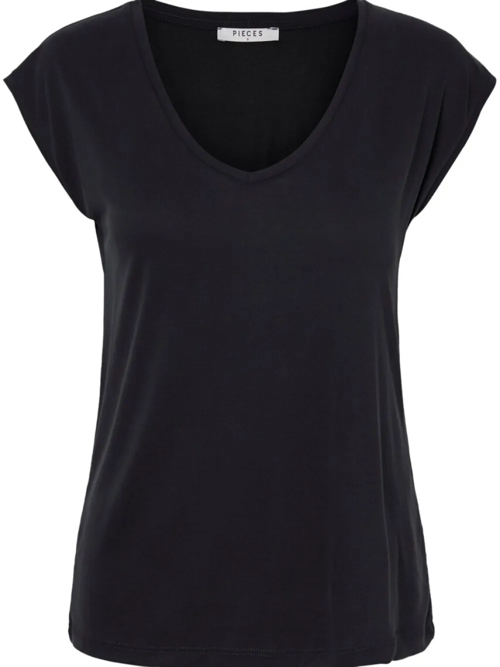 Pieces T-paidassa on joustava ja miellyttävä laatu. Pääntienä kaunis V. Suora istuvuus..
