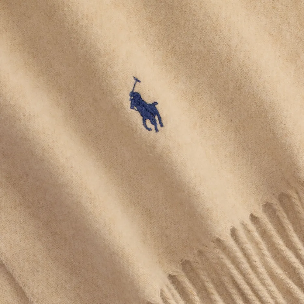 Italiassa pehmeästä villalangasta valmistettu huivi on hapsureunus molemmissa päissä ja viimeistelty tavaramerkiksi muodostuneella kirjaillulla poni-aiheellamme.