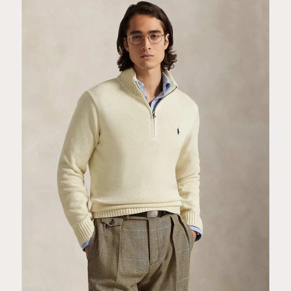Tämä klassinen polo-neulepusero on neulottu pehmeästä kammapuuvillasta ja viimeistelty ikonisella Polo Pony -kuviolla.