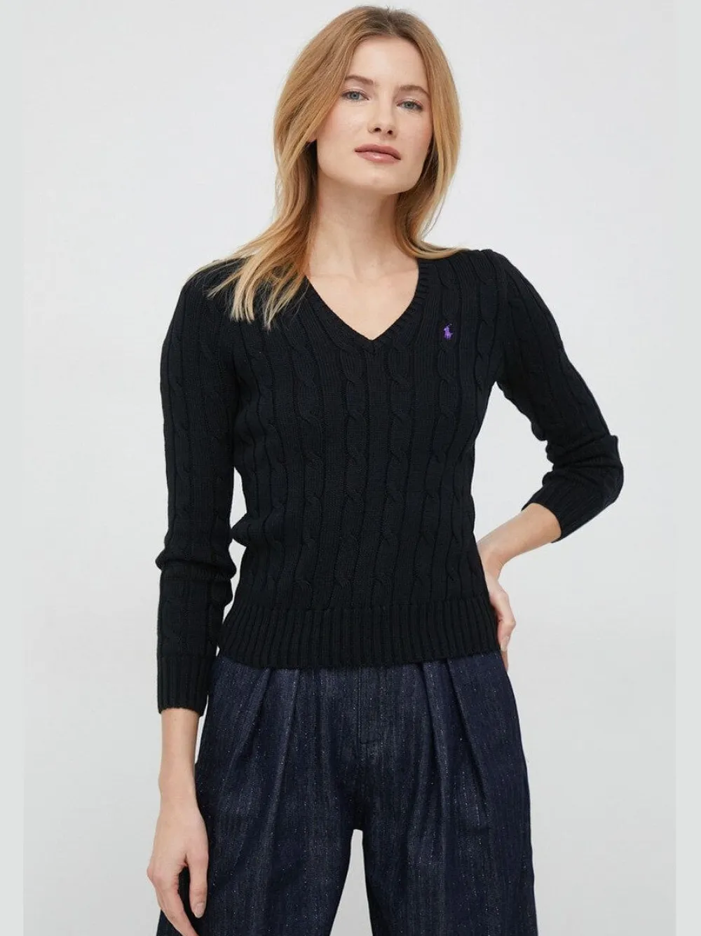 Brodeerattu puuvillainen V-kaula-aukkoinen pusero Polo Ralph Laurenilta naisille.