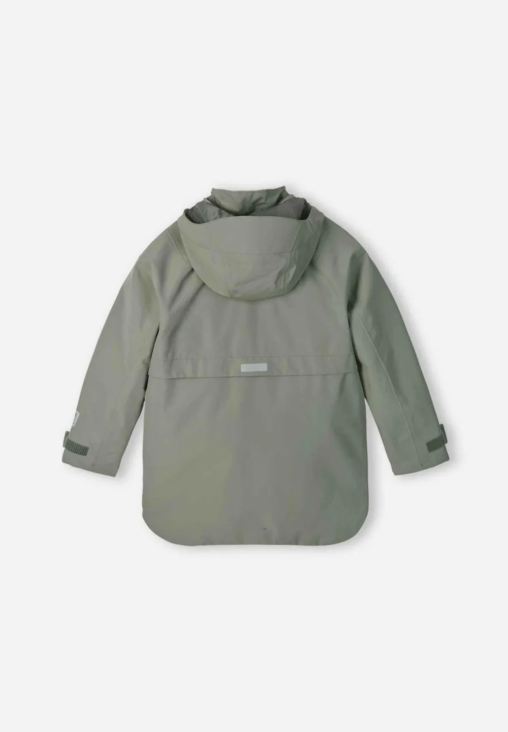 Unohda sadetakit ja sateenvarjot – ota tilalle vedenpitävä Reimatec-parka. Reimatec-parkatakki on tehty usean materiaalin sijaan vain yhdestä, joten se on 100-prosenttisesti kierrätettävä ja kiertotaloudellinen. Kun takki on liian kulunut käyttöön tai eteenpäin annettavaksi, materiaali voidaan sulattaa ja käyttää uudelleen – kerta toisensa jälkeen. Parkassa on kestävä, bluesign®-hyväksytty pää- ja vuorimateriaali. Siinä on sertifioitua kierrätyskuitua, sekä fluorihiiletön, vettä ja likaa hylkivä BIONIC-FINISH®ECO-kyllästys. Takki pitää kuivana pitkäkestoisessakin sateessa.