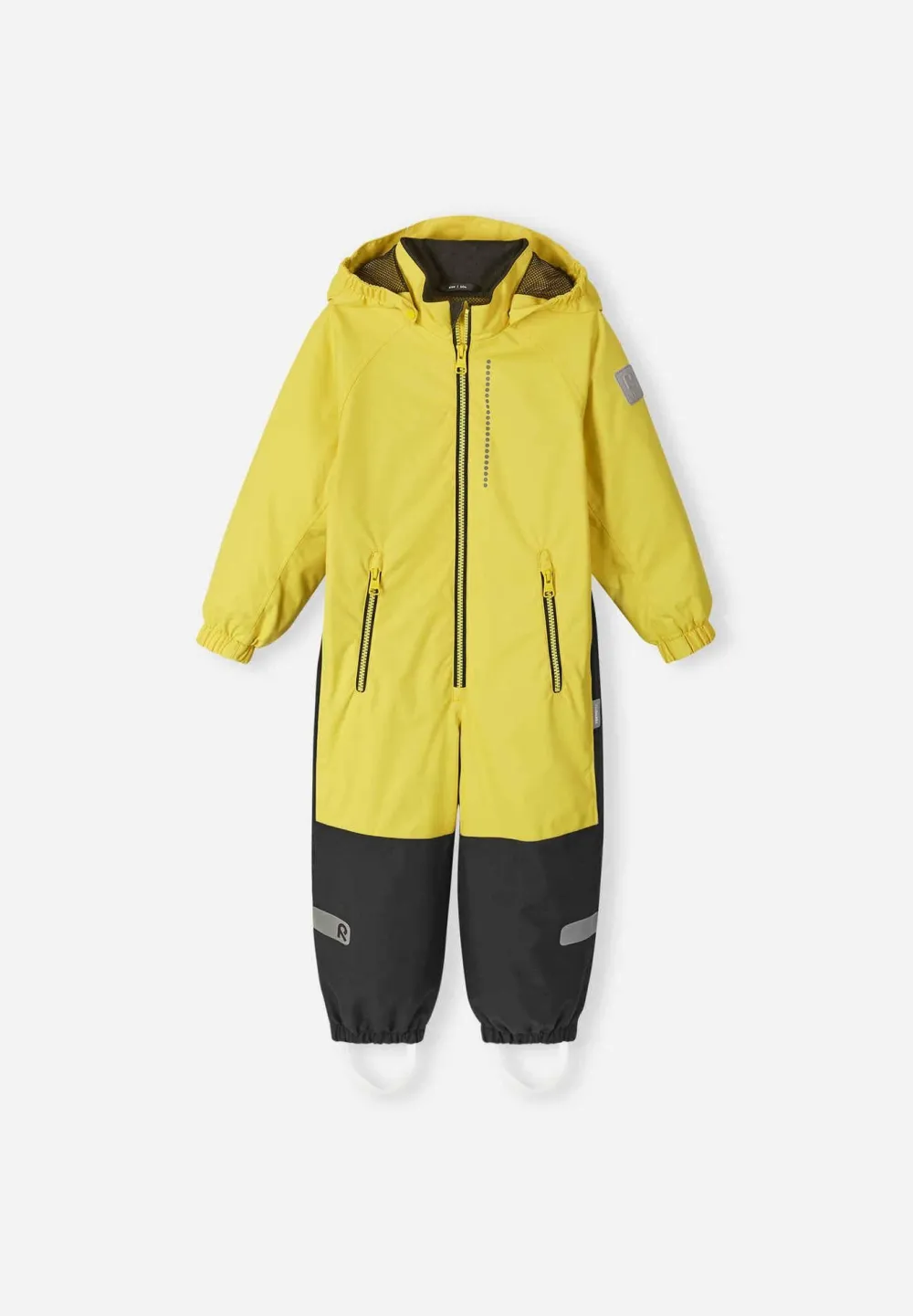 Alaosa on tehty pitkäikäisyyden varmistamiseksi erittäin kestävästä kankaasta, ja vuorin sileys helpottaa pukemista, vaikka puettava ei malttaisikaan pysyä paikallaan. Turvallinen, irrotettava huppu irtoaa helposti, jos se tarttuu puunoksiin, ja päivän aikana löytyneet aarteet pysyvät tallessa vetoketjutaskuissa. Lasten haalarissa on heijastinsomisteet, ja se on vedenpitävä.